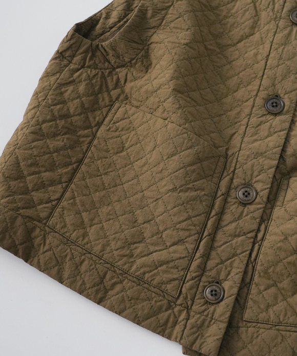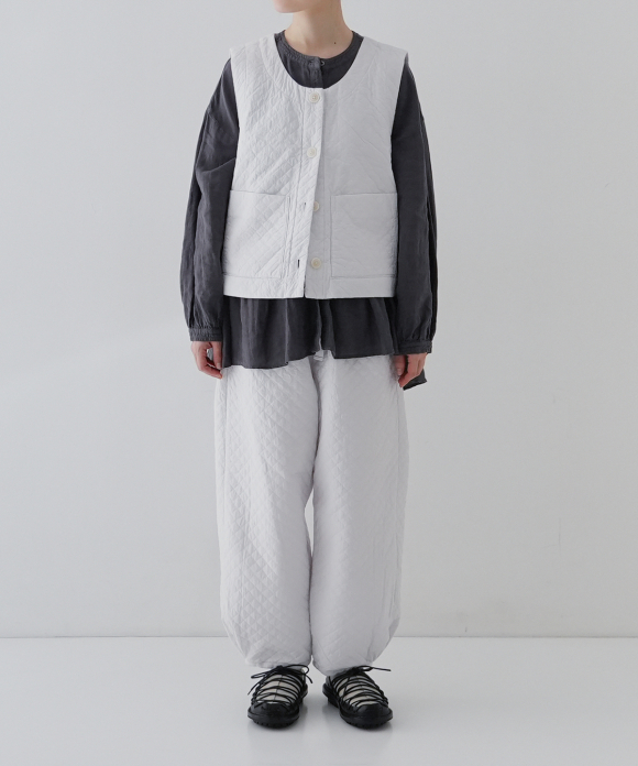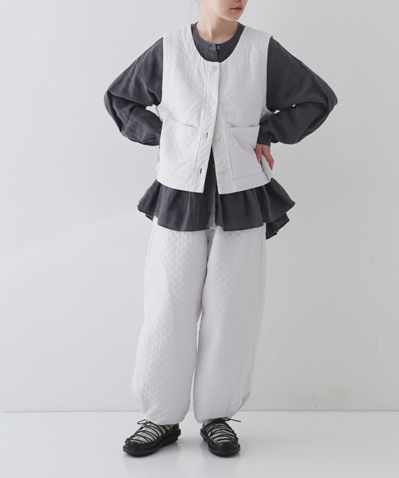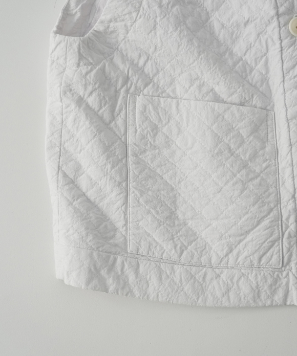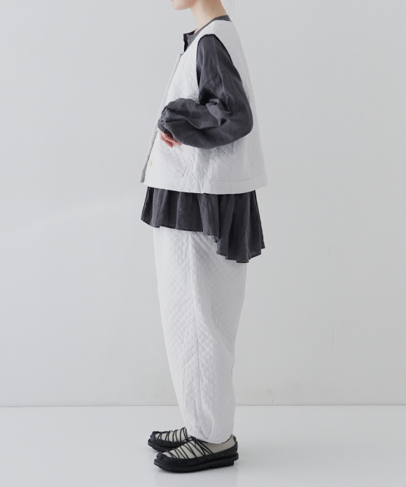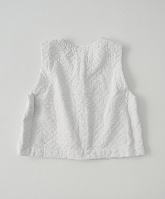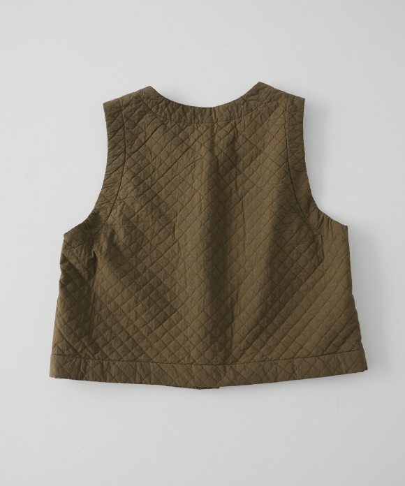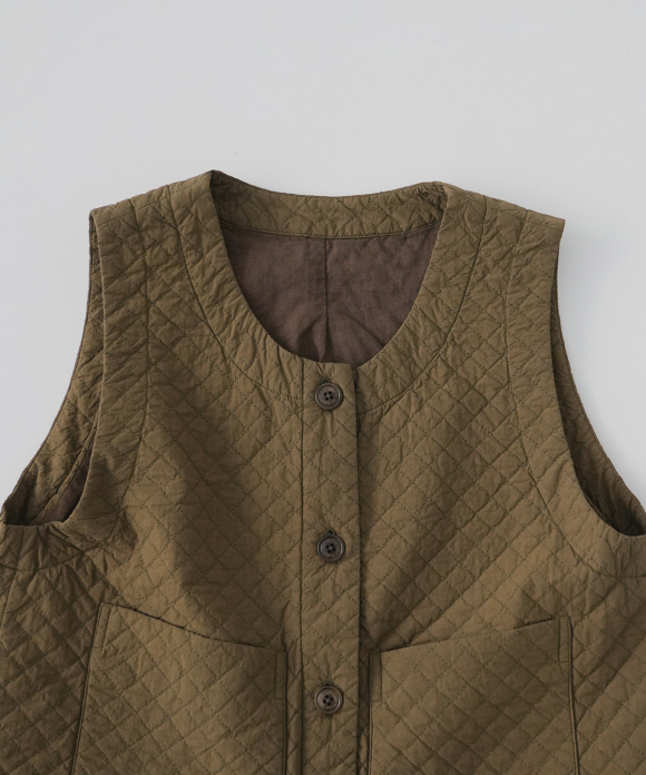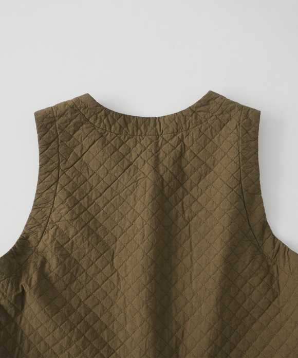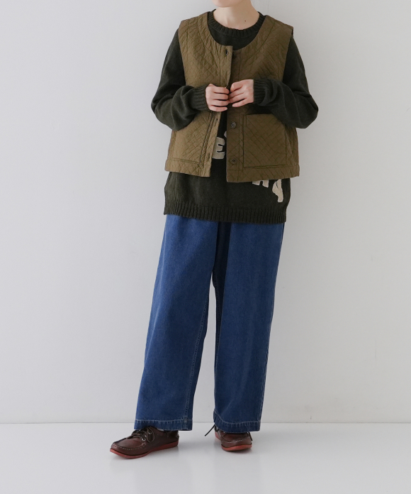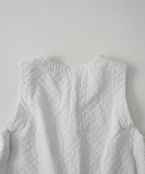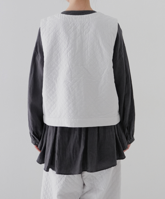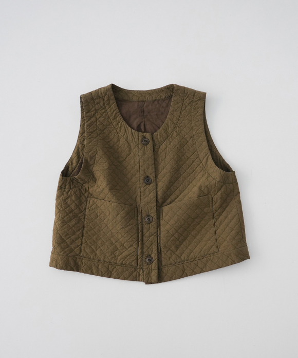This crew neck vest has a short, boxy silhouette. Like the coat, it is lined with linen, a signature feature of the brand.