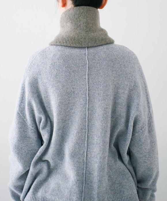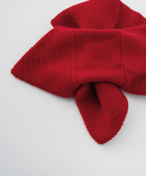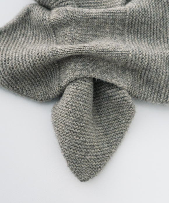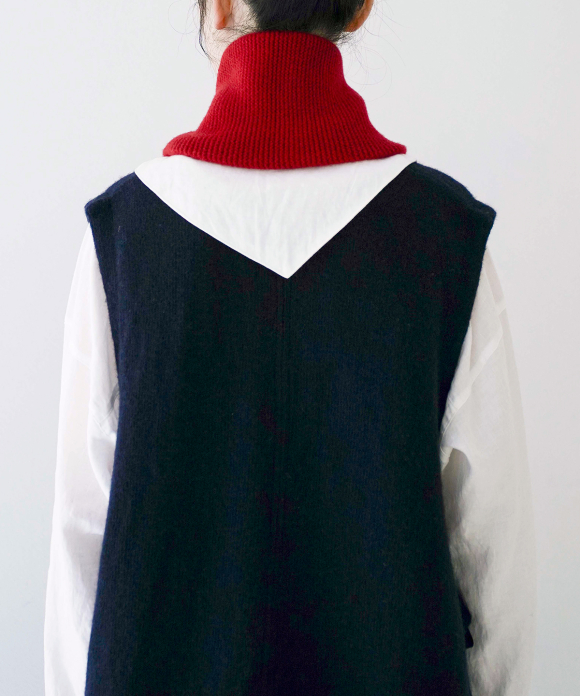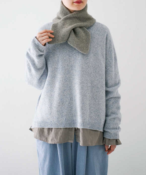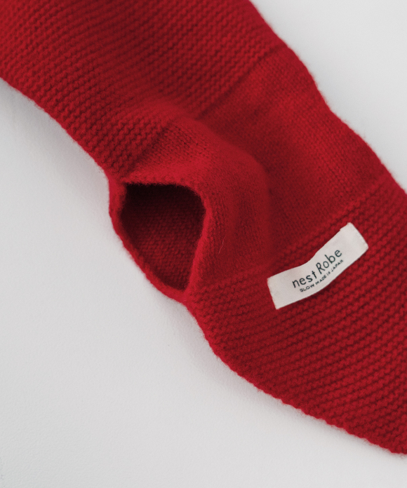 Made with lambswool. Lambswool is considered to be one of the softest wools, with a fine yarn similar to cashmere, and is characterized by its fluffy, soft texture. It is triple-ply twisted to preserve its fluffy texture, resulting in a very warm material that is not itchy around the neck.