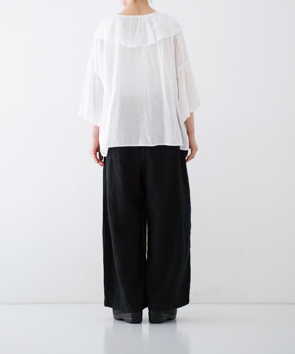 These curvy pants are made from 100% linen and feature a wide silhouette.