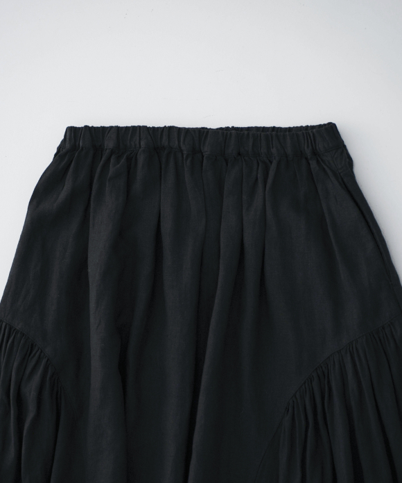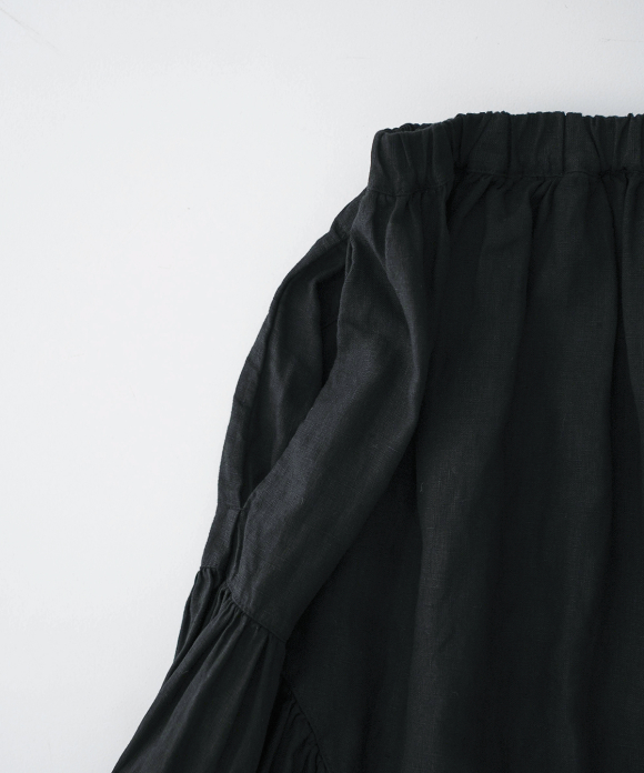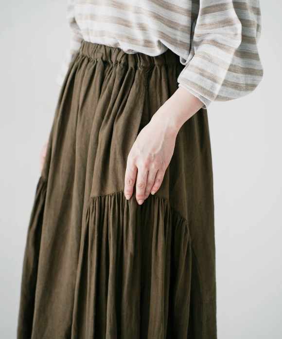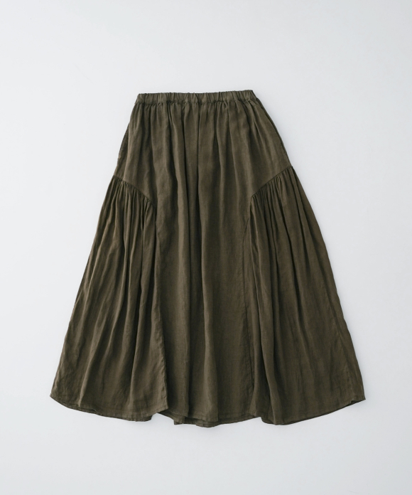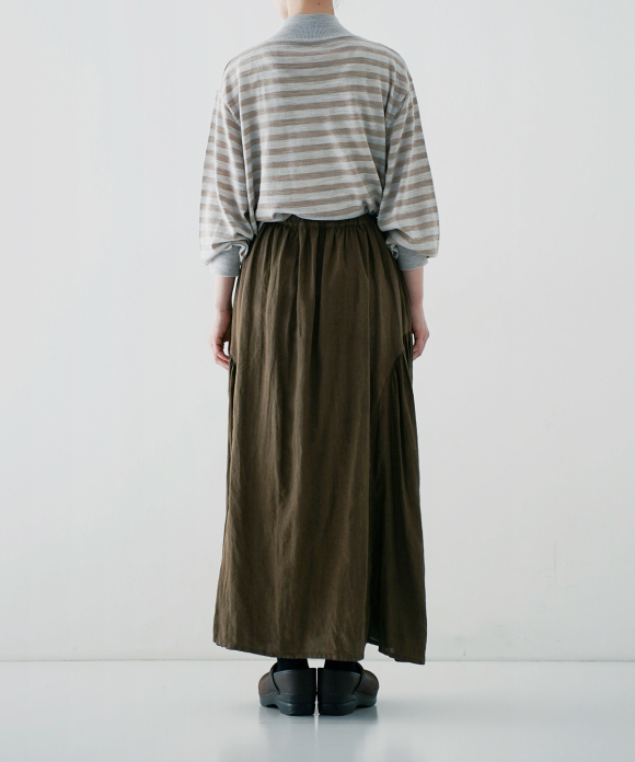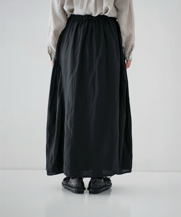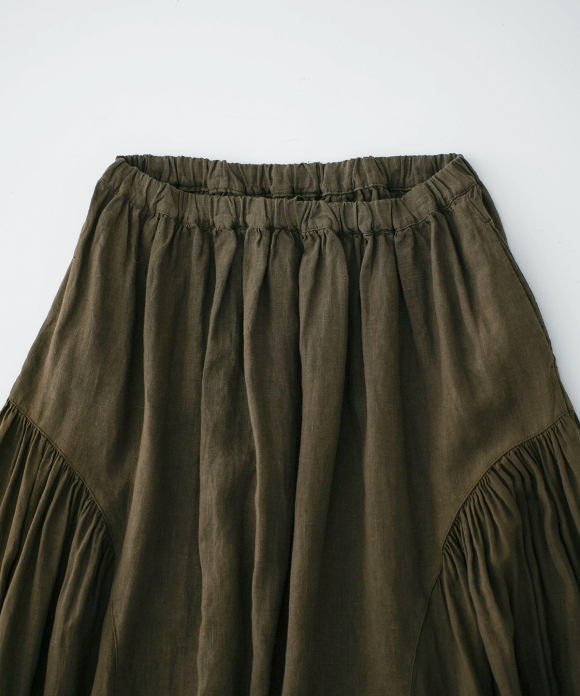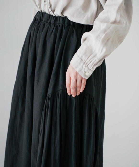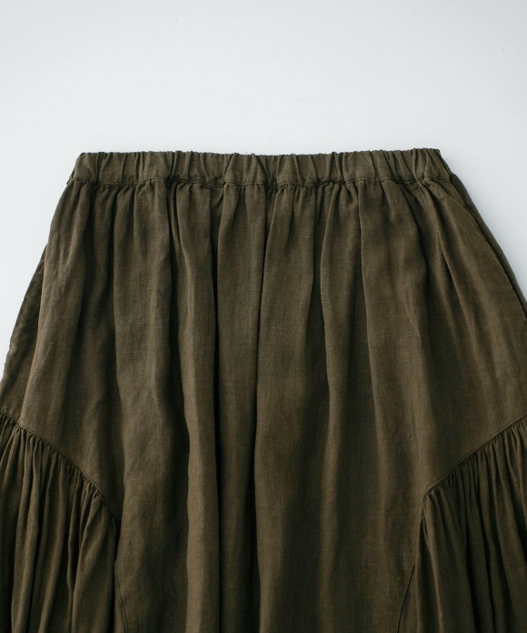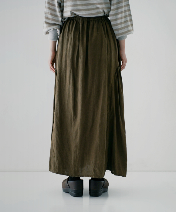 60 linen is used for the rounded seams to give them a light feel, making this skirt versatile for a wide range of outfits, from casual to dressy.