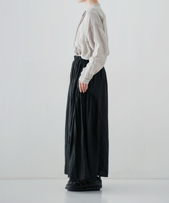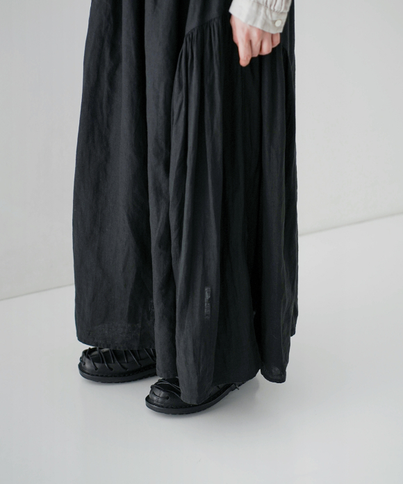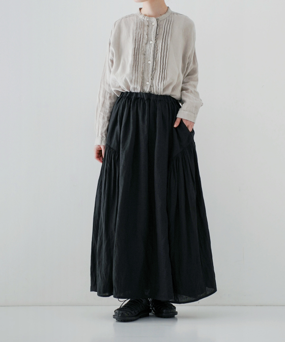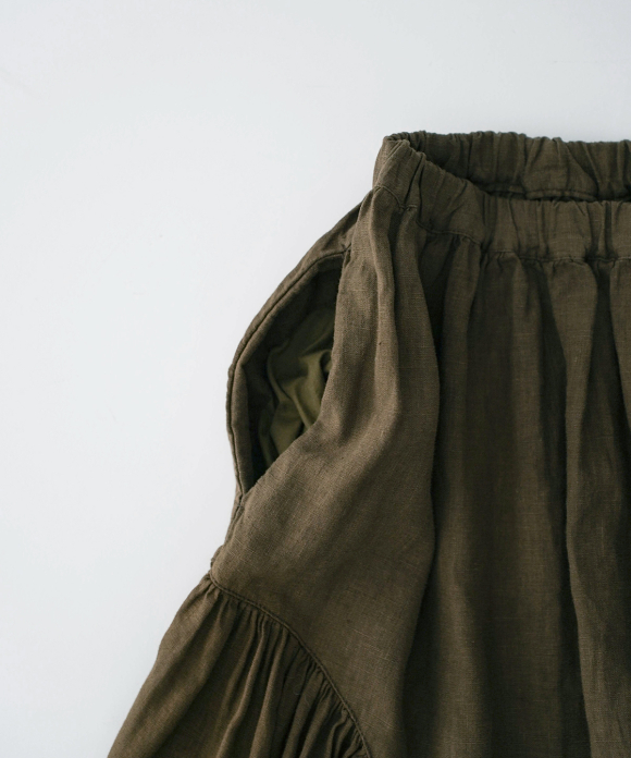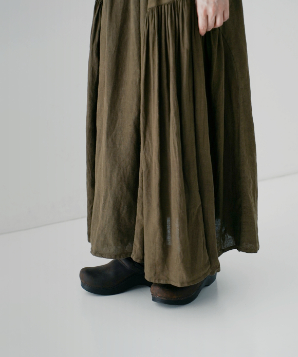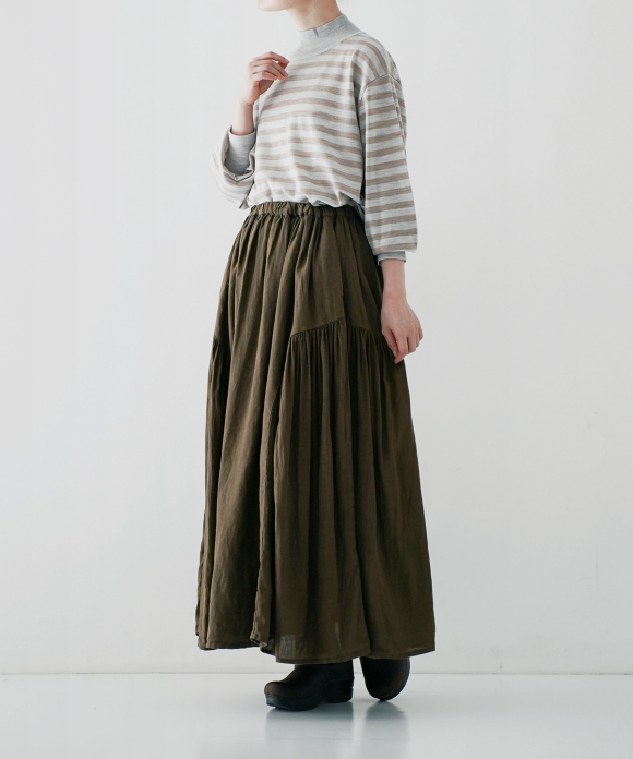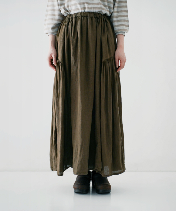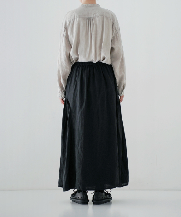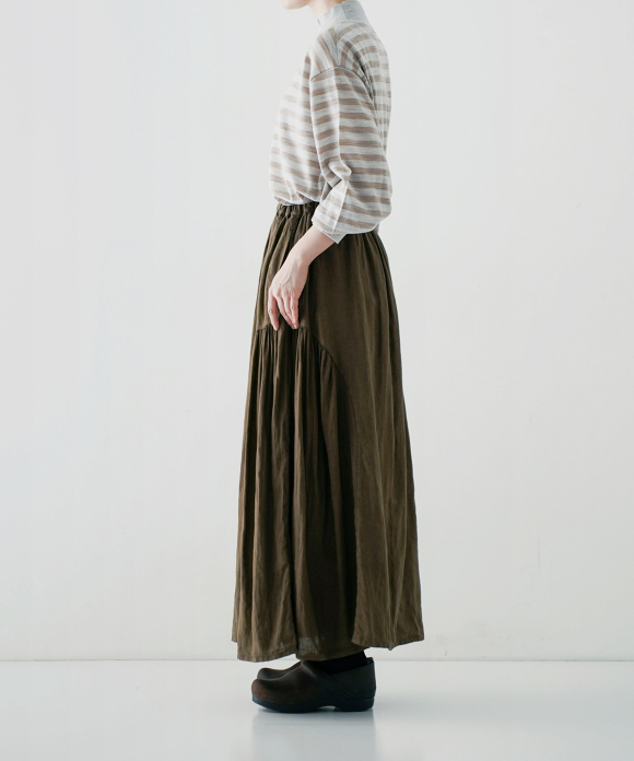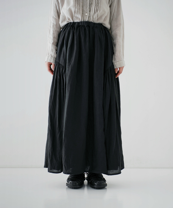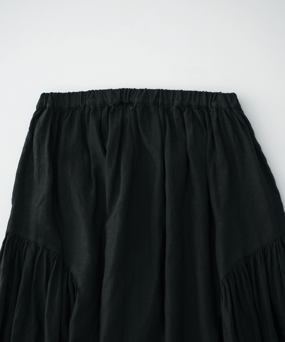 60 linen is used for the rounded seams to give them a light feel, making this skirt versatile for a wide range of outfits, from casual to dressy.