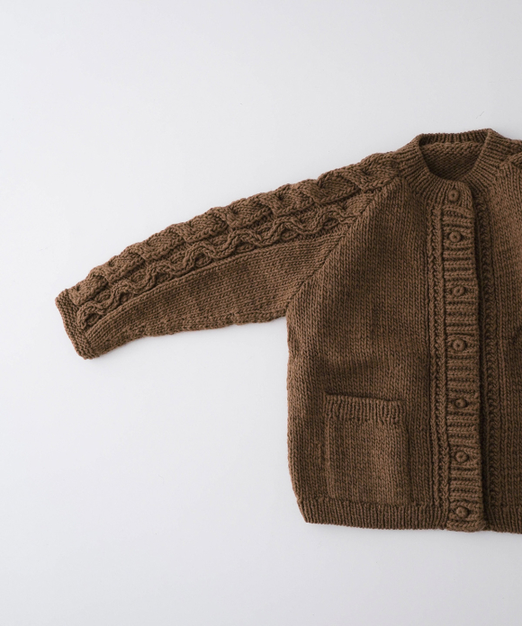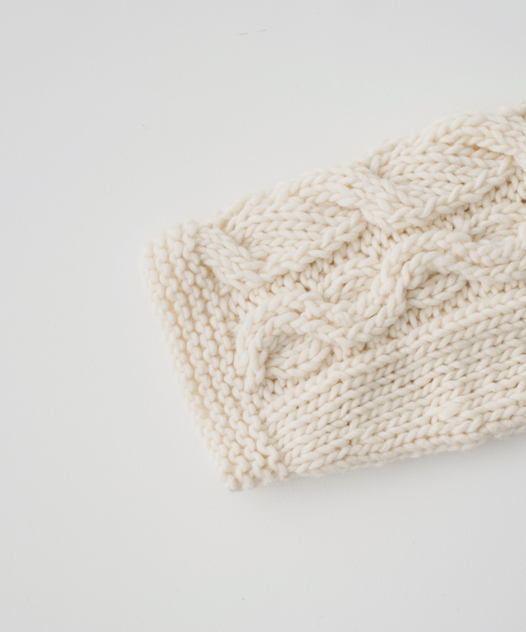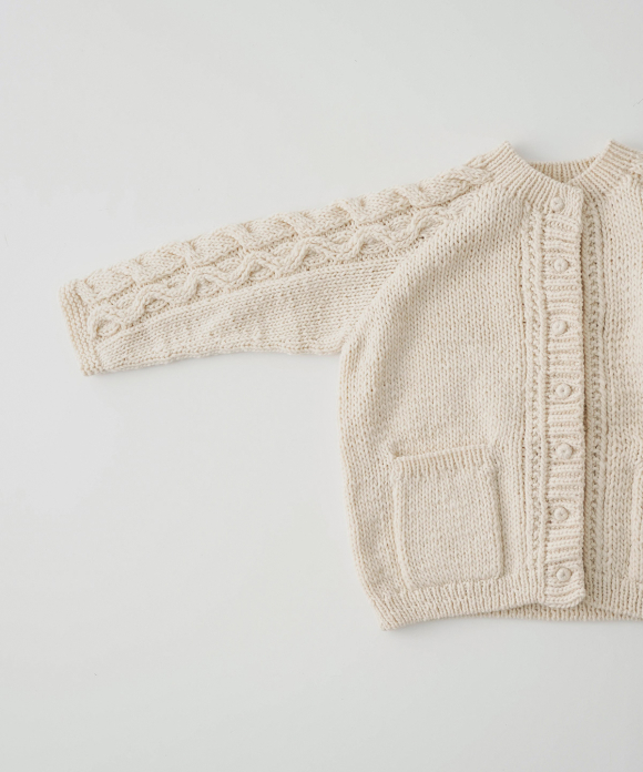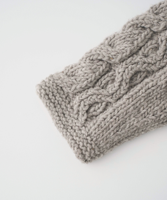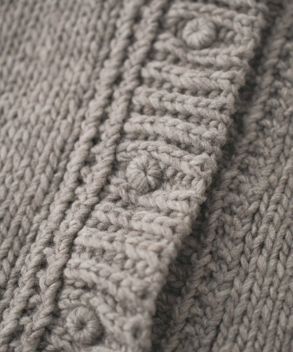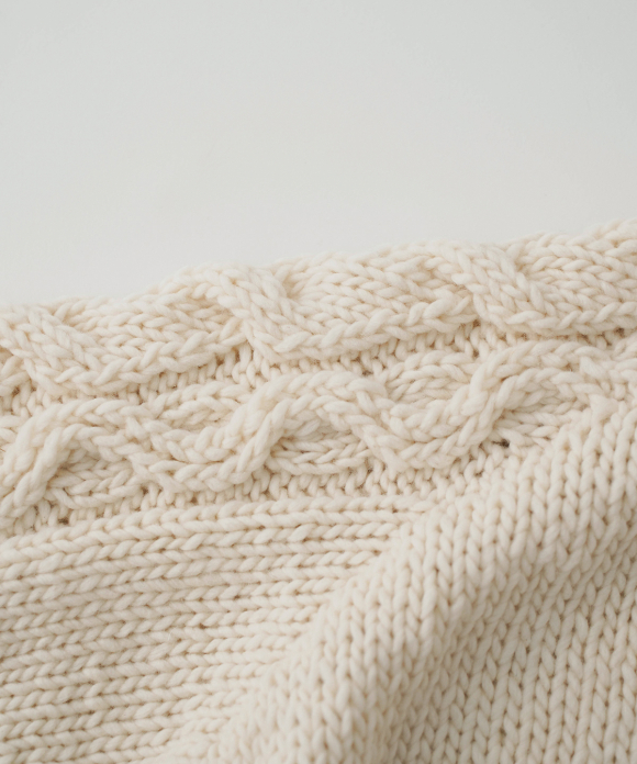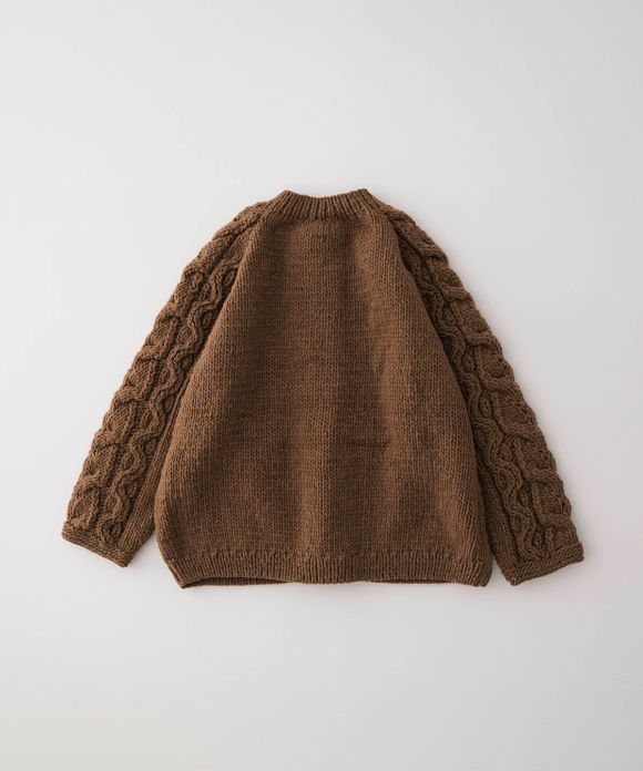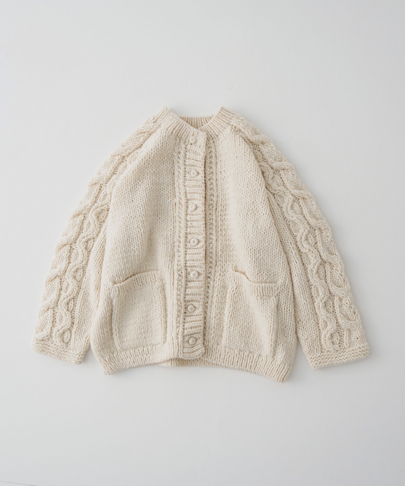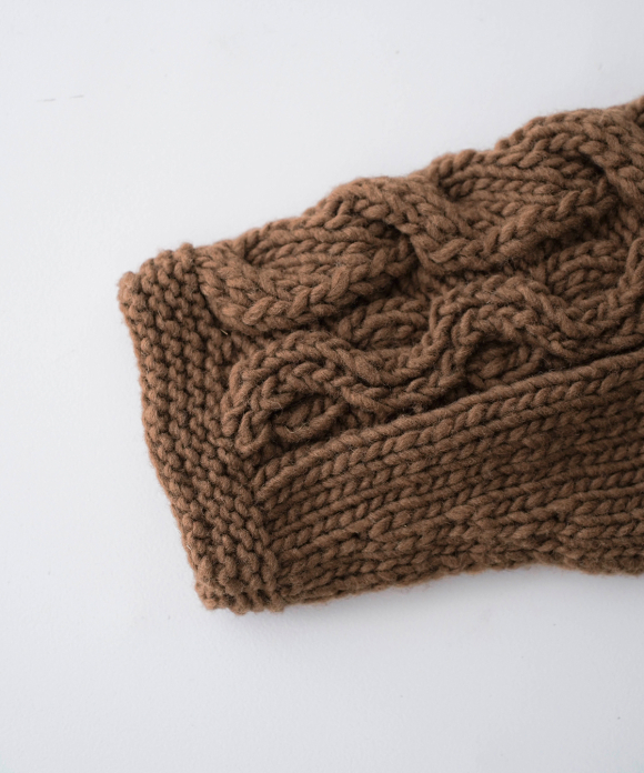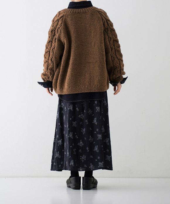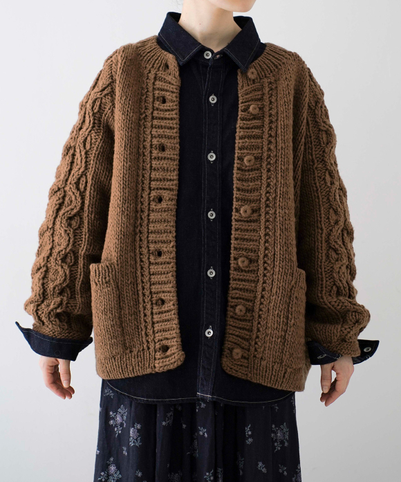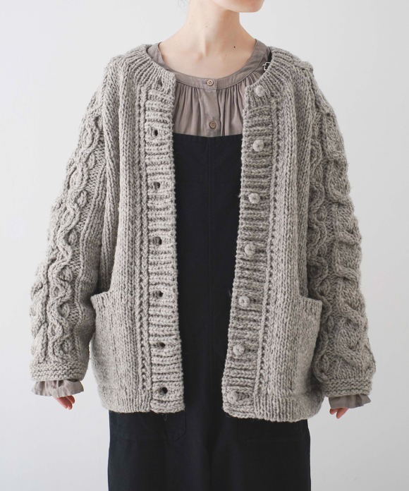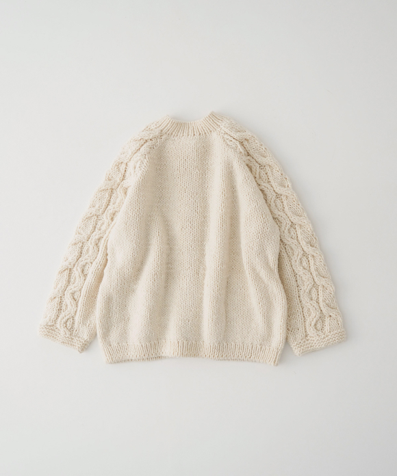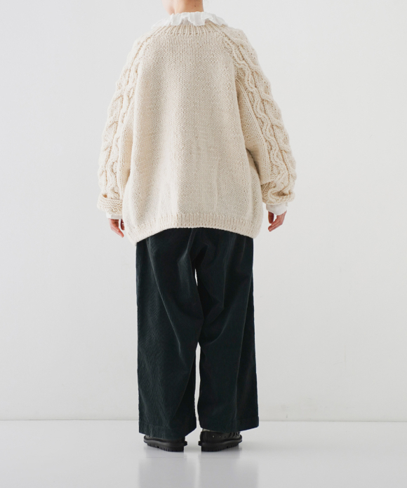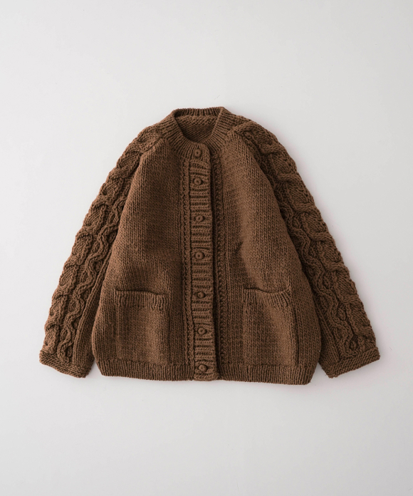 To make it easy to coordinate with any item, the body is intentionally finished in a simple meliad knit with a cable design on the sleeves.