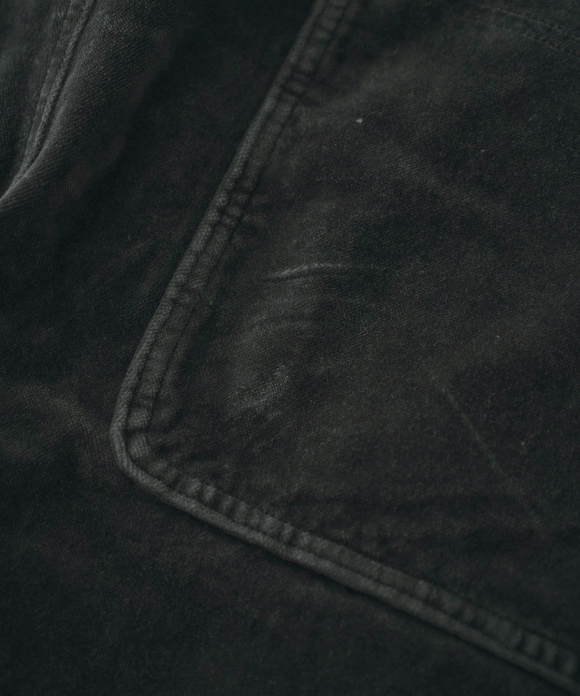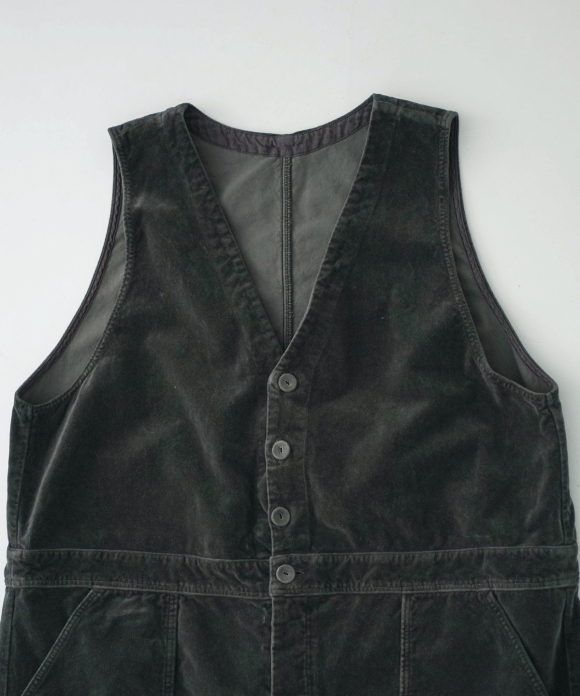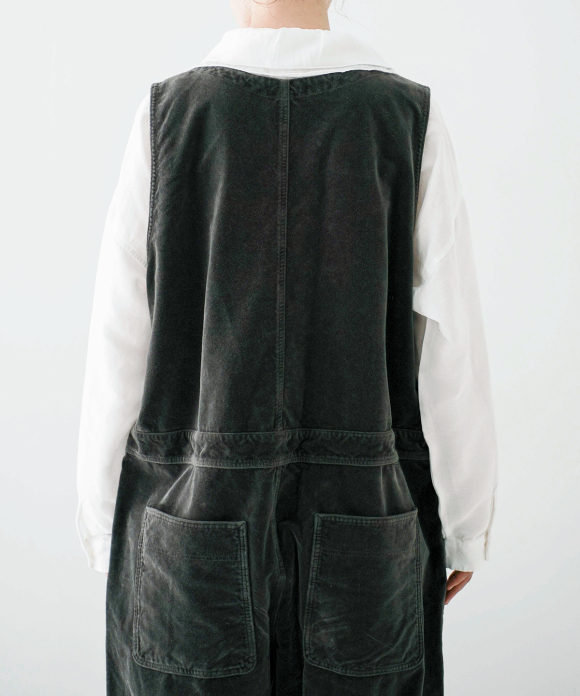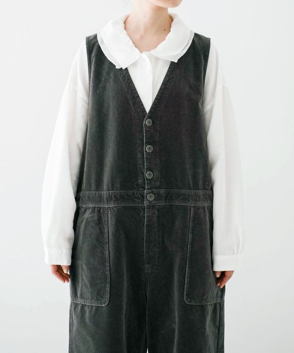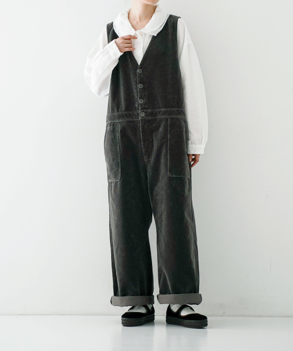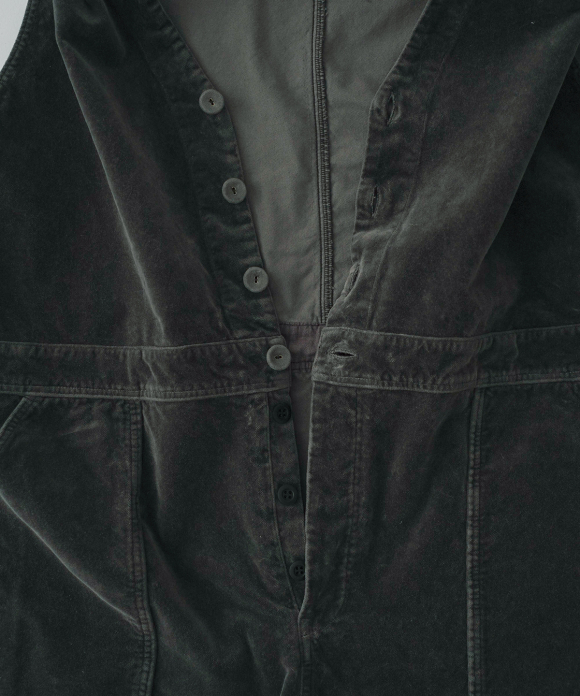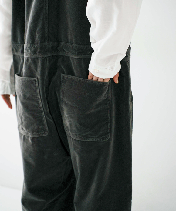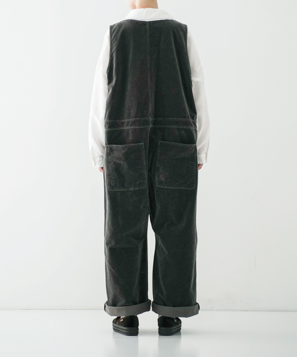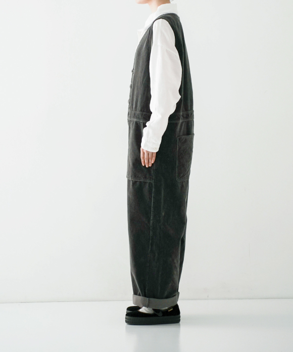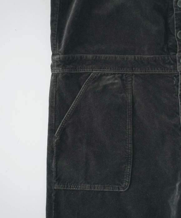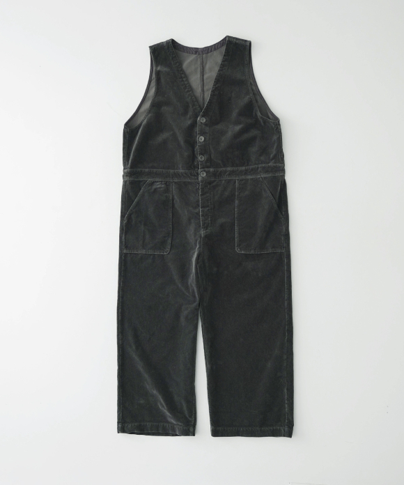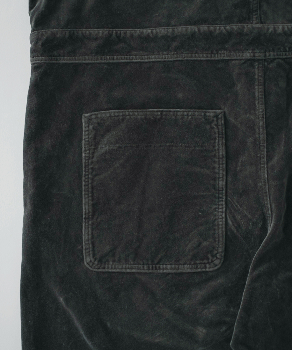 These overalls are garment-dyed cotton velvet.