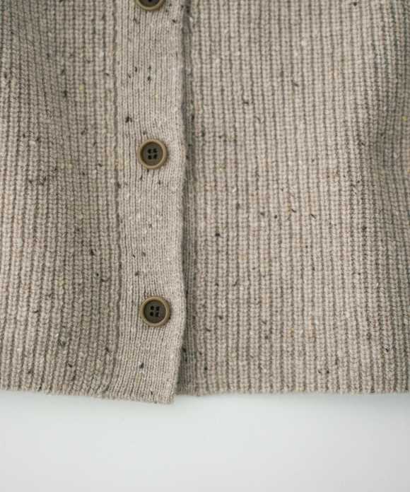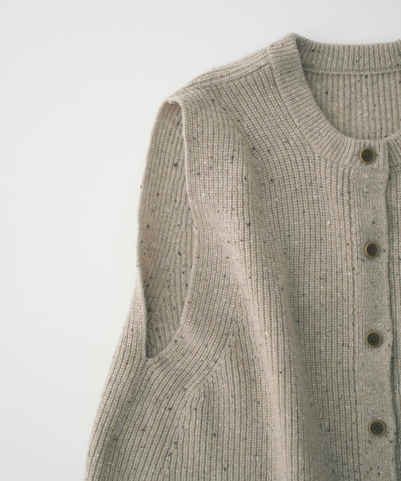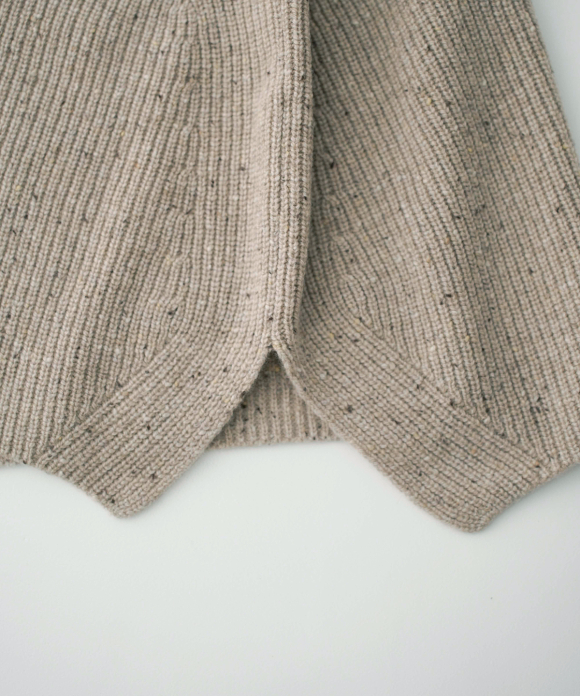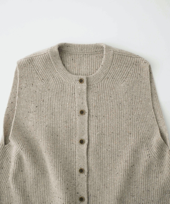 This tweed-like worsted yarn is made from a nep blend of merino wool (19.5 microns) and cashmere.