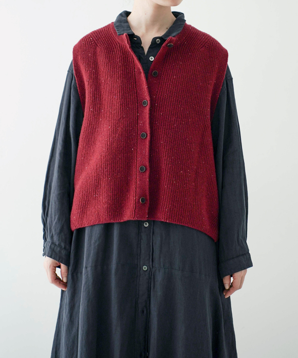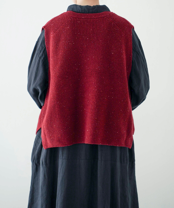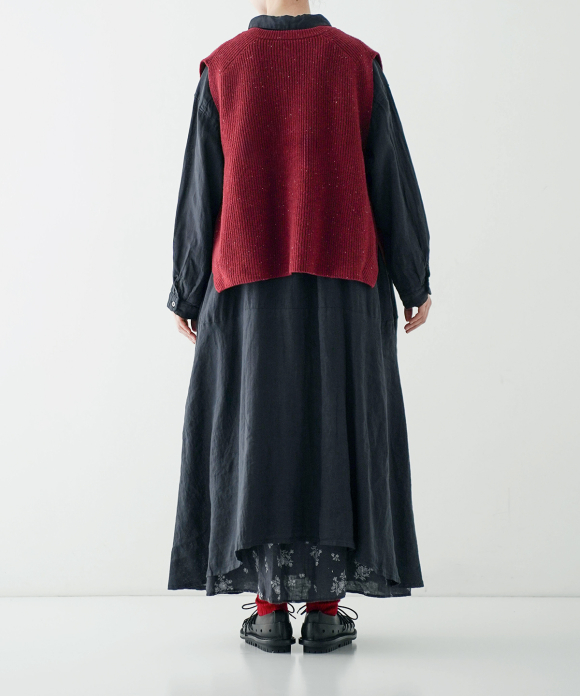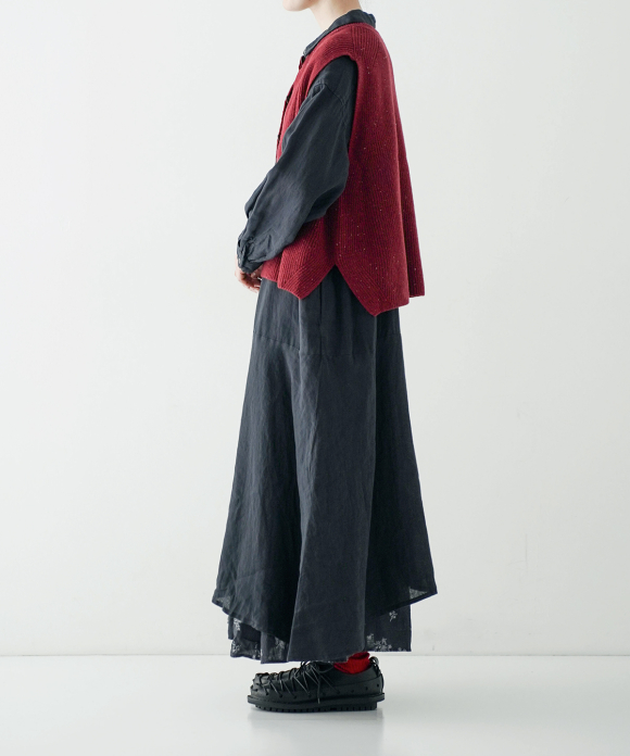 The short length and narrow shoulders create an A-line silhouette, allowing you to enjoy a variety of coordination options with dresses and shirts. The side slit design is a highlight, and it also creates a cute silhouette when viewed from the side.