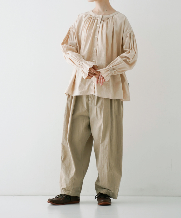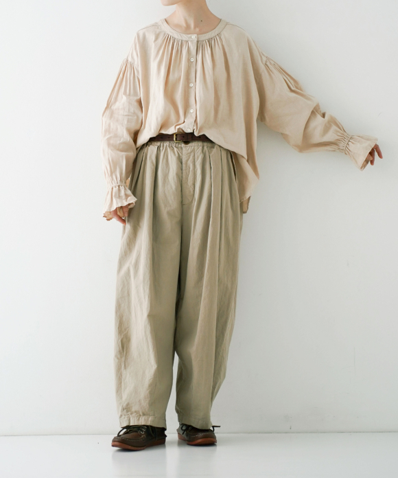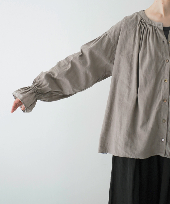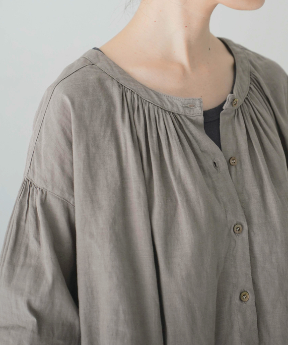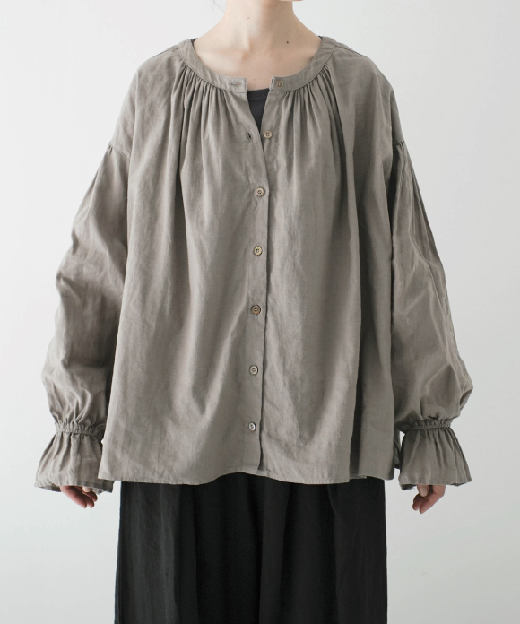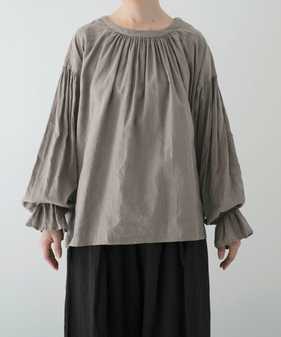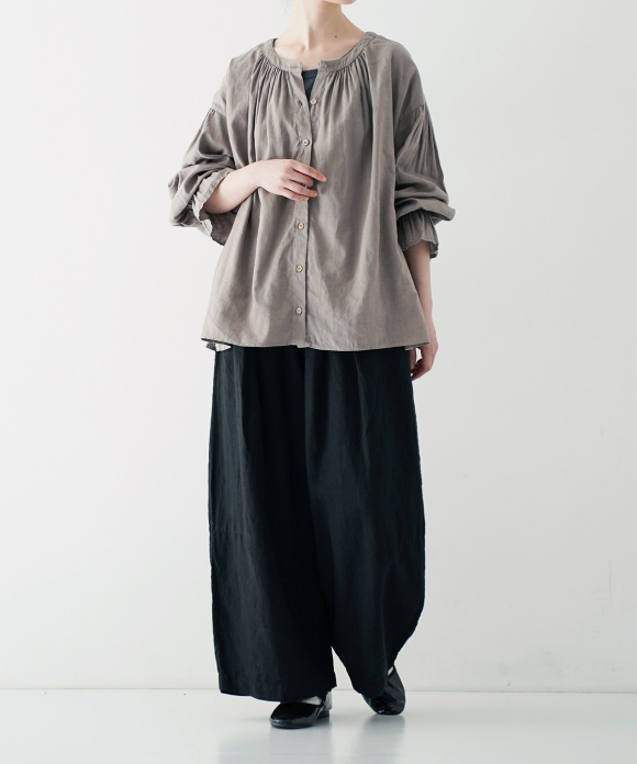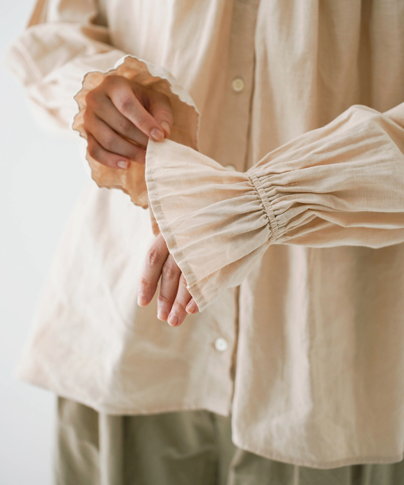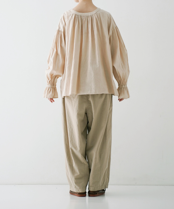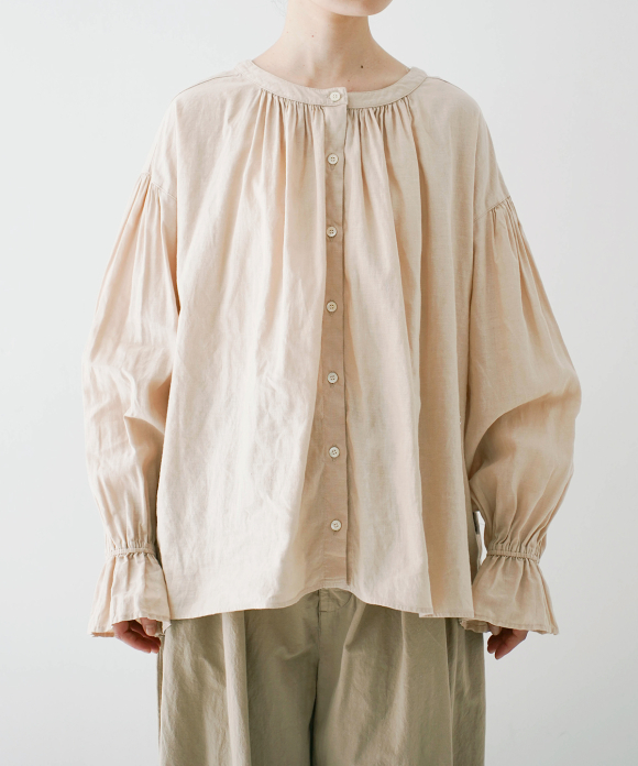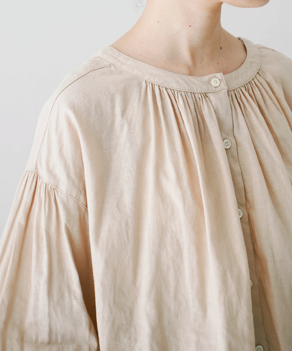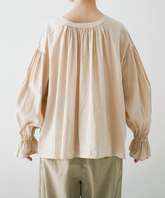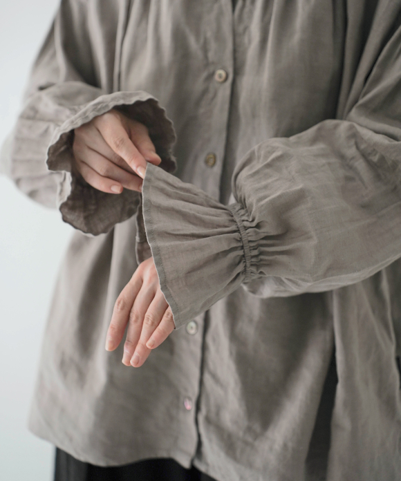 (UpcycleLino) Linen Cotton Candy Wrapper Sleeve 2-Way Blouse