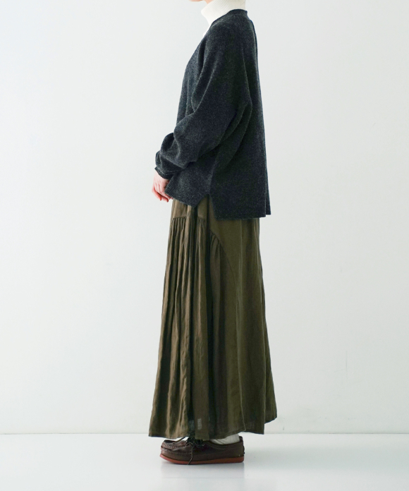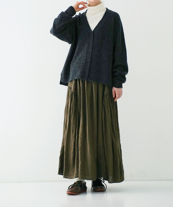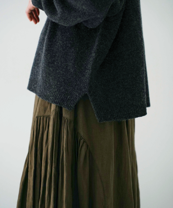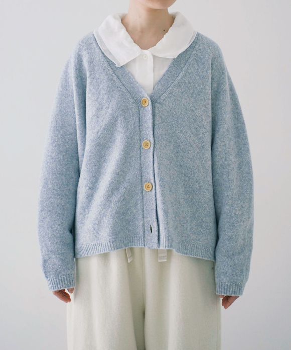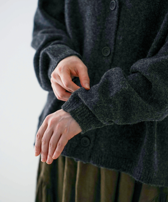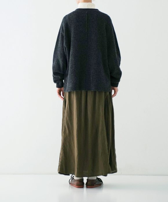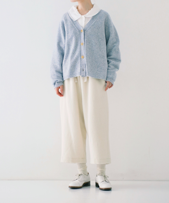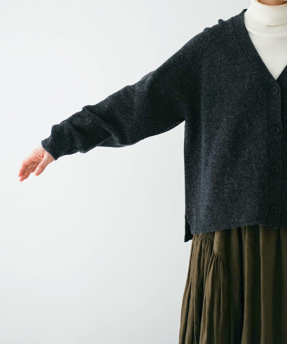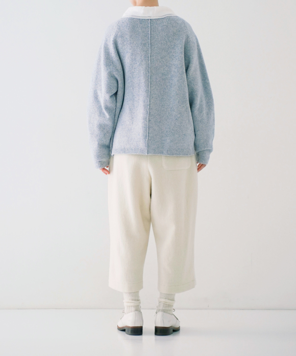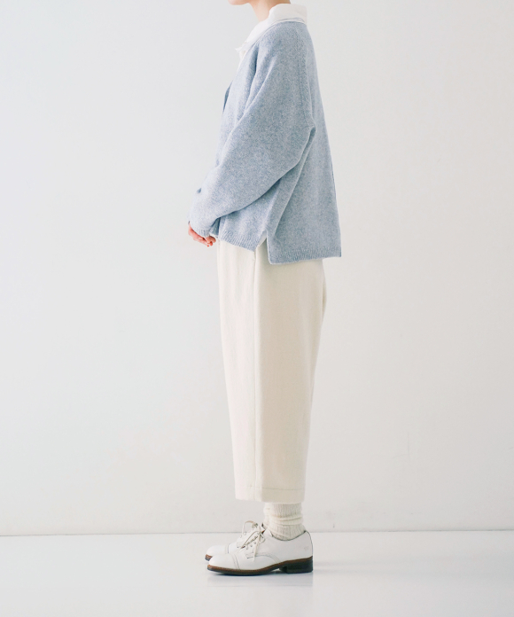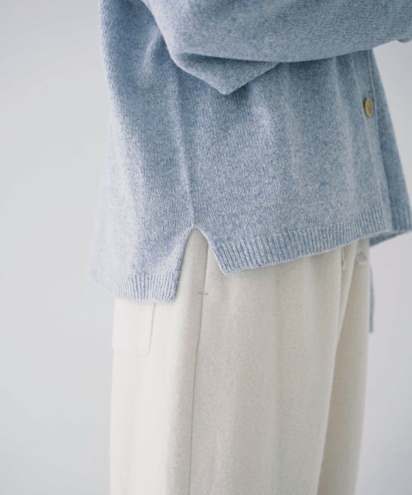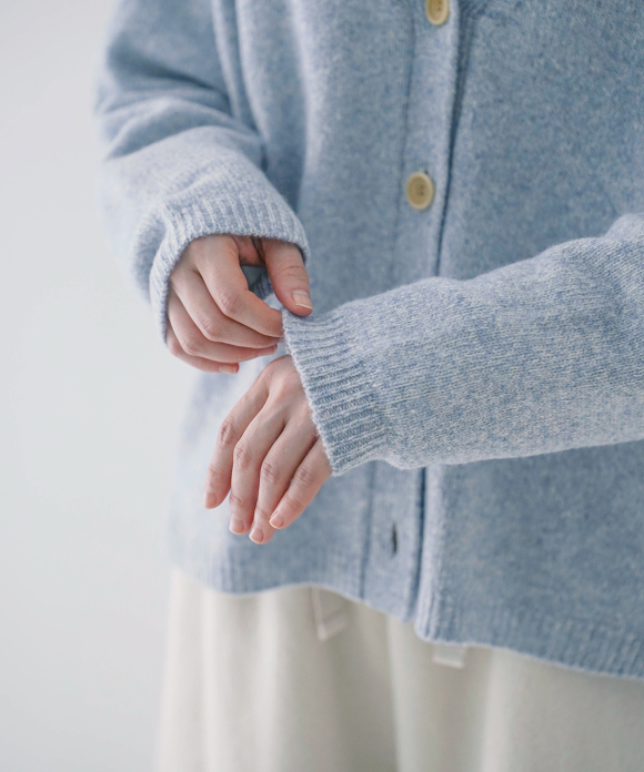 Made with Australian merino wool, this yarn is twisted more tightly than regular wool, and is doubled to create a strong yarn that can be knitted as a single yarn. It becomes softer and more comfortable with repeated wear, making it a material you can cherish for years to come. The yarn is dyed in Japan, and spun and twisted in Izumiotsu, Osaka Prefecture.