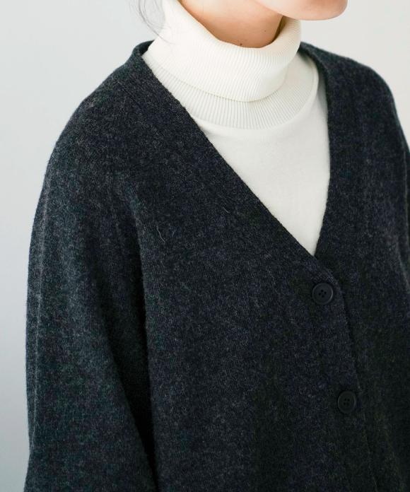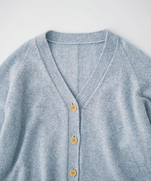 We've created a V-neck cardigan shaped three-dimensionally using a 7-gauge WHOLEGARMENT machine.