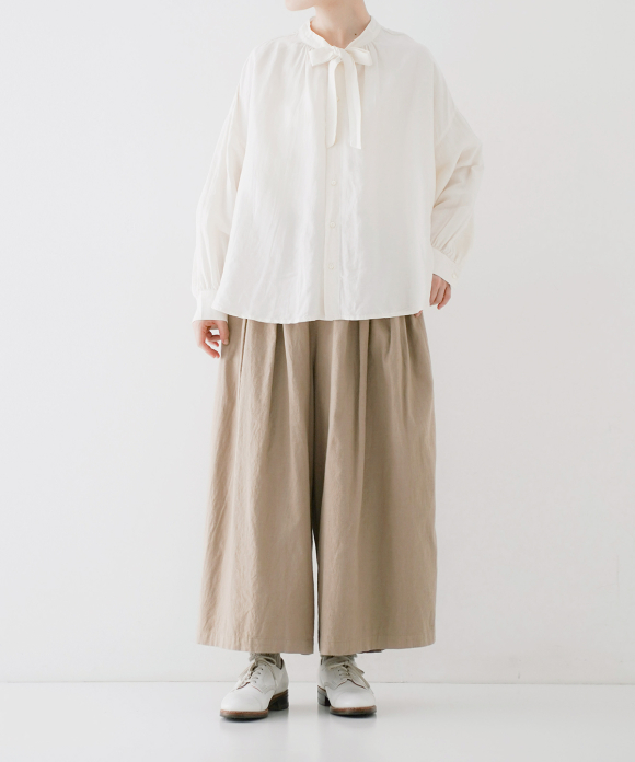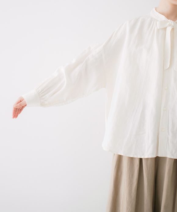 To maximize the inherent qualities of the material, no processing is required, maximizing the elegant luster and suppleness of silk and the firmness of linen.