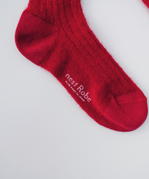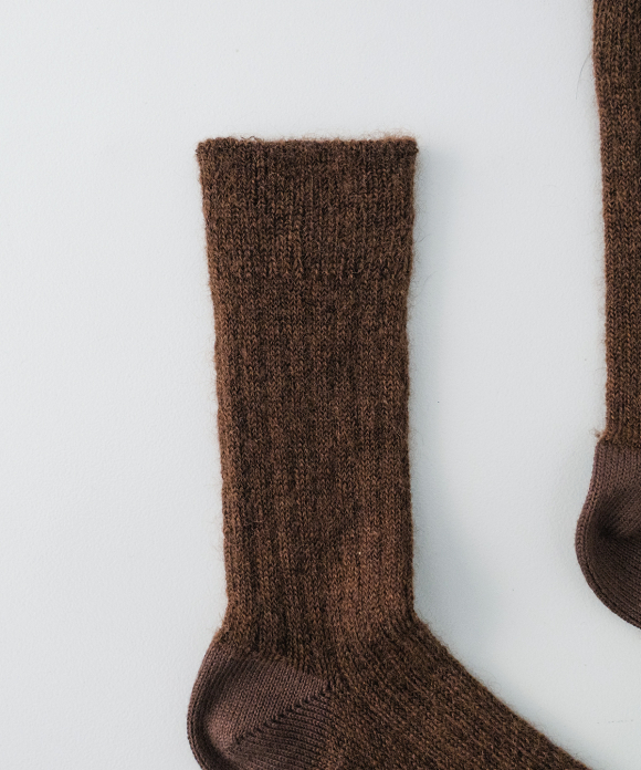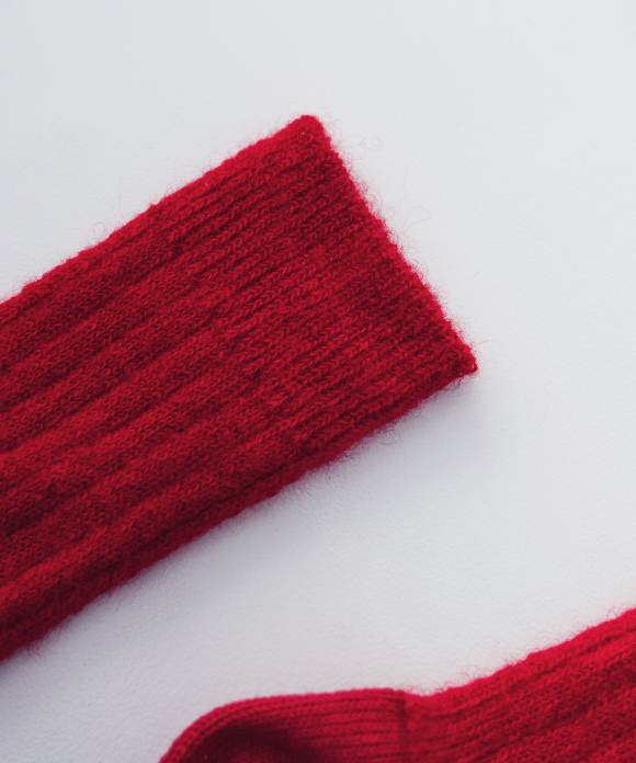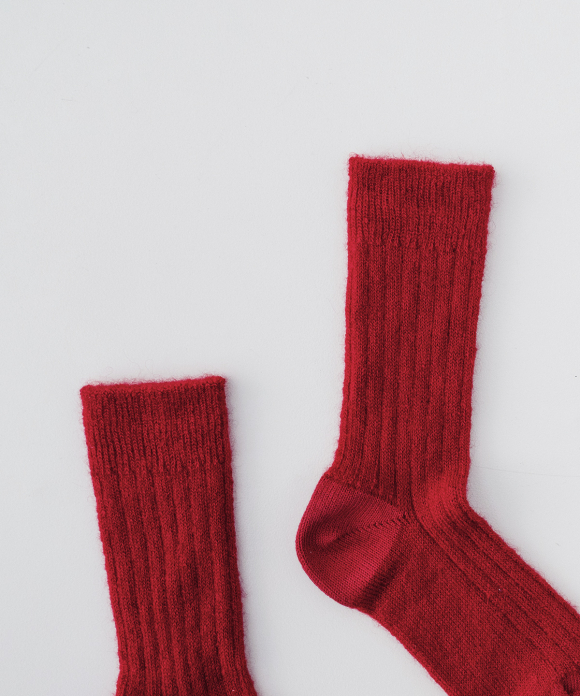 These winter-ready ribbed socks are knitted with mohair-blend yarn.