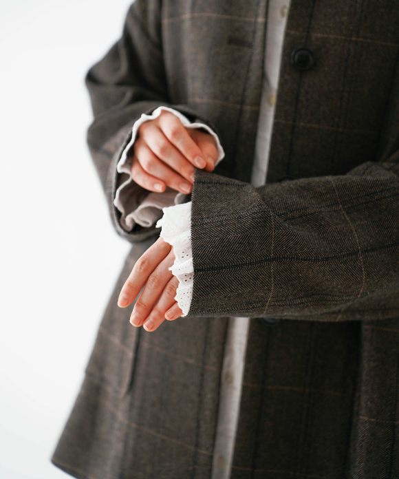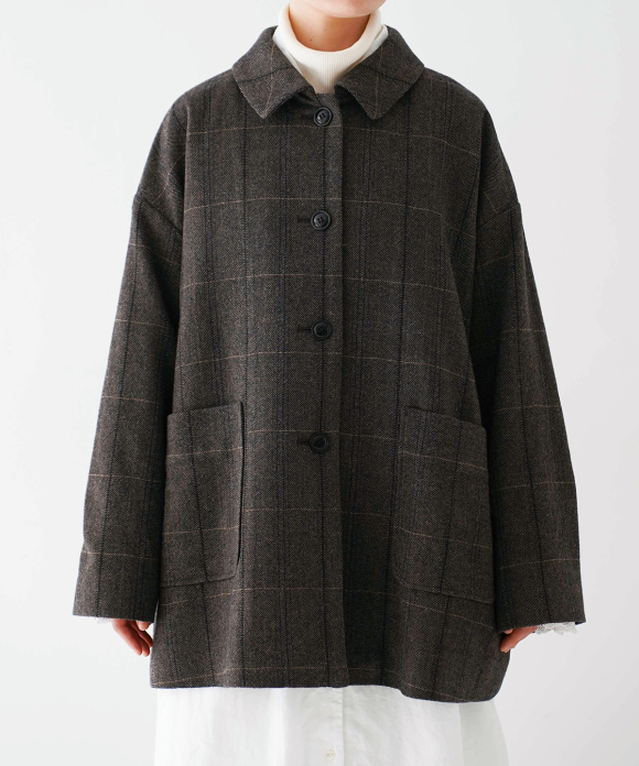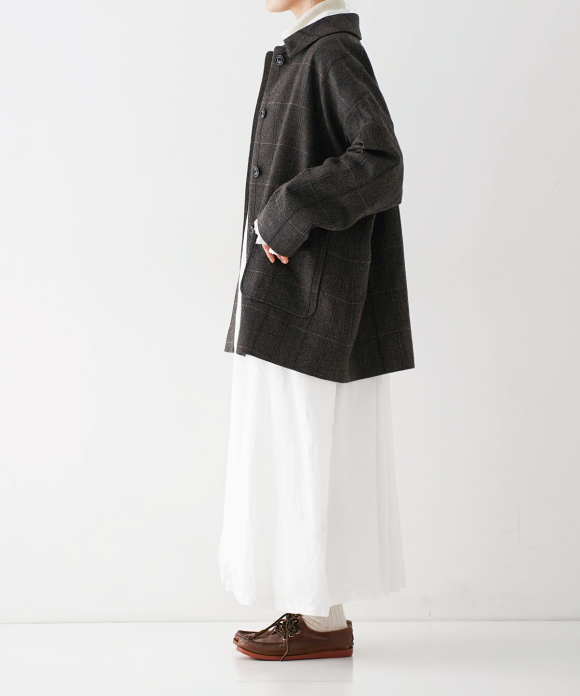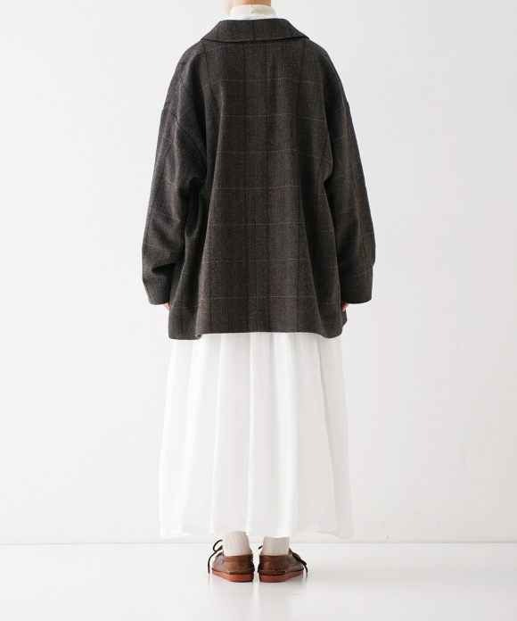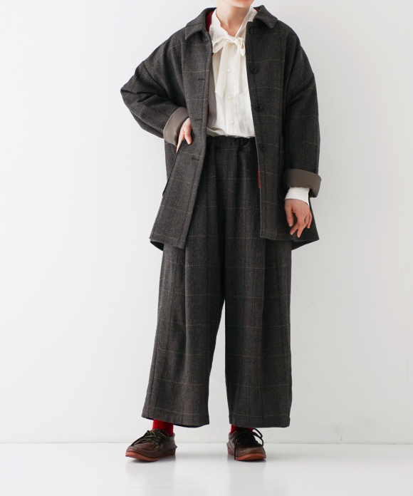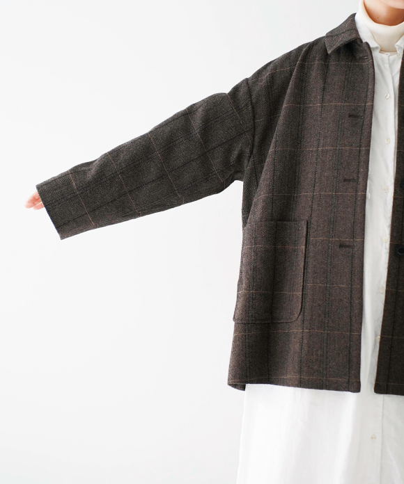 The body and sleeves have a slightly oversized silhouette to allow for easy layering with knitwear and other items in the coming cold season. The body is lined with cotton and the sleeves with cupra, making them smooth to wear. Pair it with pants made of the same fabric for a coordinated look.