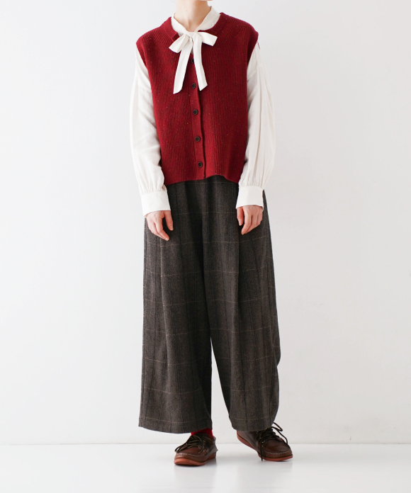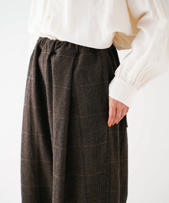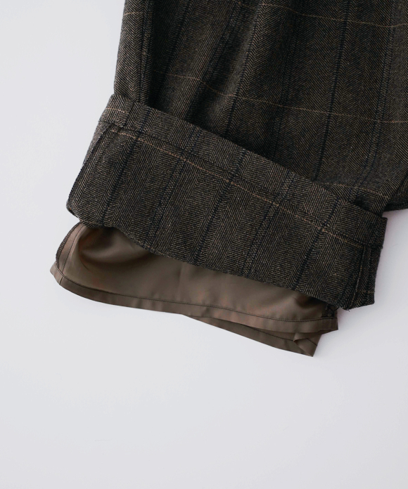 The fabric, a combination of herringbone and checked melange colors, is not too bold, allowing them to be balanced with any top. They are highly versatile, suitable for everything from everyday wear to dressy outfits.