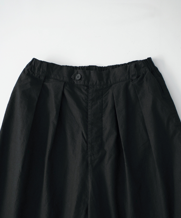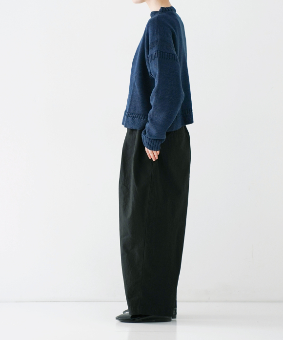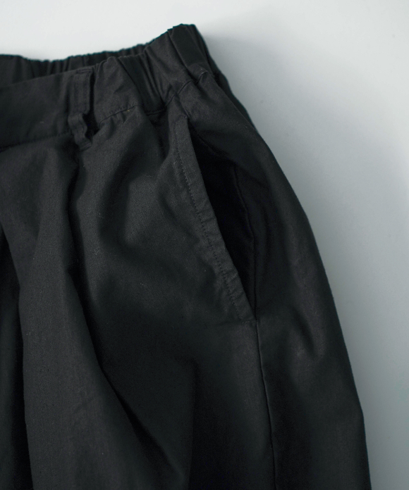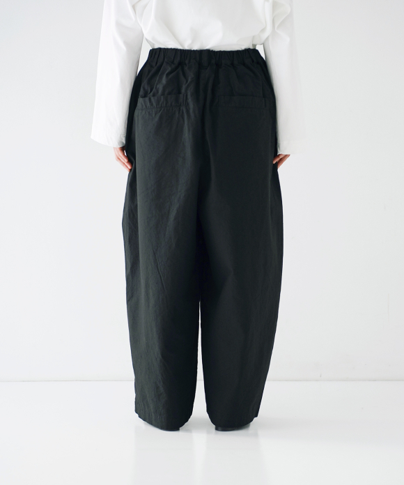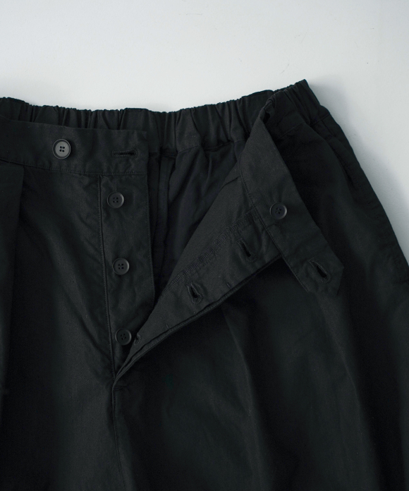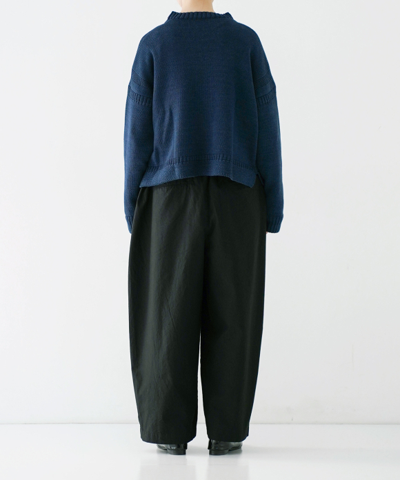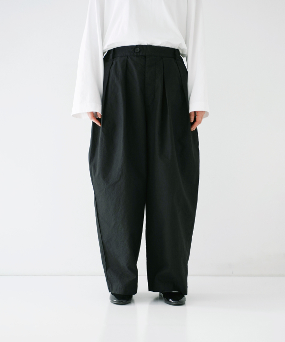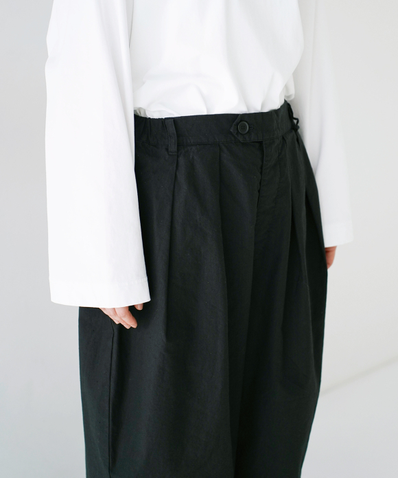 The beautiful, three-dimensional shape doesn't accentuate the body's lines, creating a relaxed yet elegant look. The offset buttons add an accent, making the design look great tucked in. We also recommend pairing them with a jacket made of the same material.