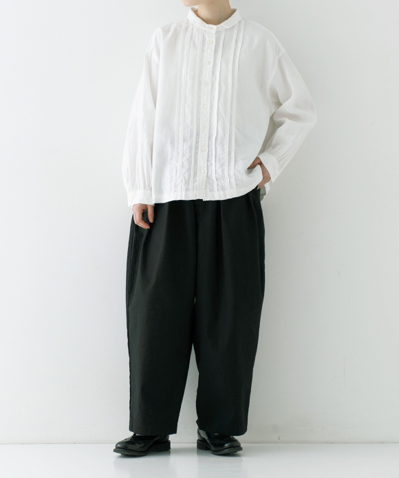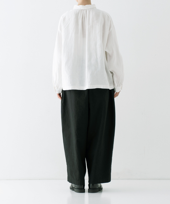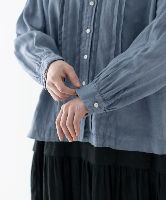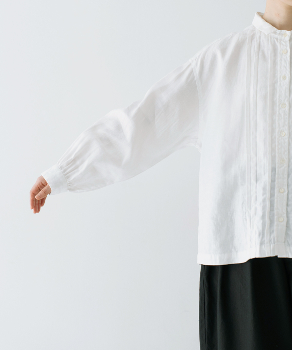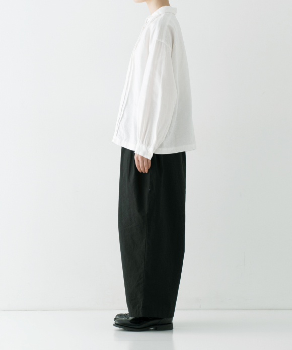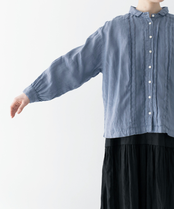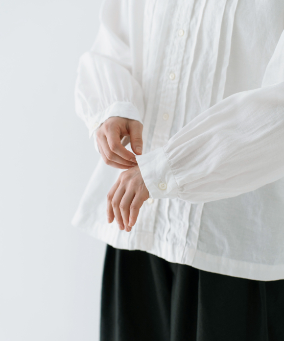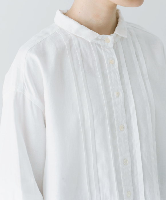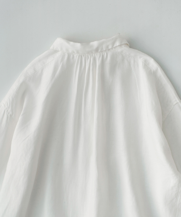 It is woven at a specialized linen factory in Hamamatsu City, Shizuoka Prefecture, and finished in Shiga Prefecture, where it is pre-treated and bleached, resulting in a linen fabric that is fully traceable back to its original source.