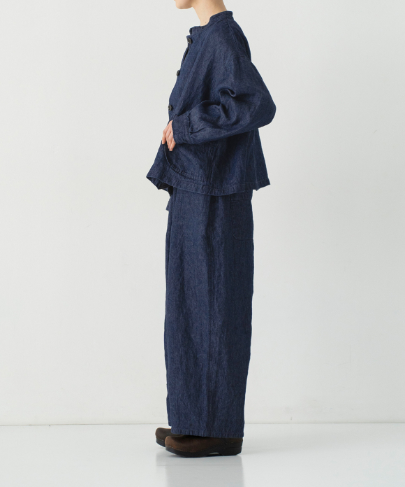Rope dyeing 100% linen yarn is extremely difficult, so this is the finest 100% linen denim, crafted with the exceptional skills of our artisans.