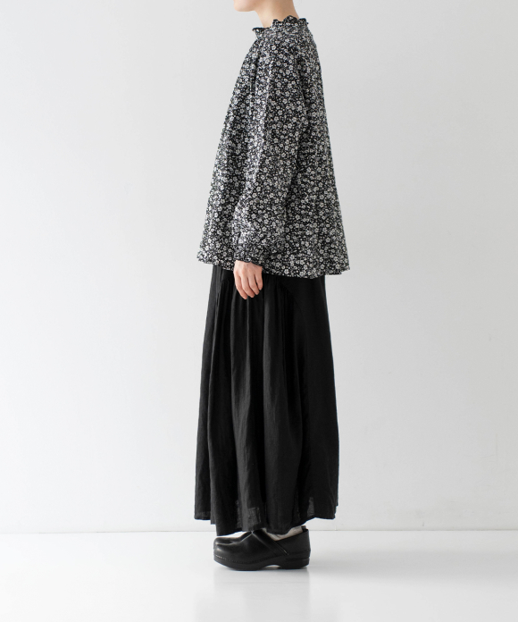 The overlapping of small flowers creates a nostalgic look, while also adding a touch of natural elegance. With a refreshing impression and gentle texture, this material will comfortably add color to your spring and summer outfits.