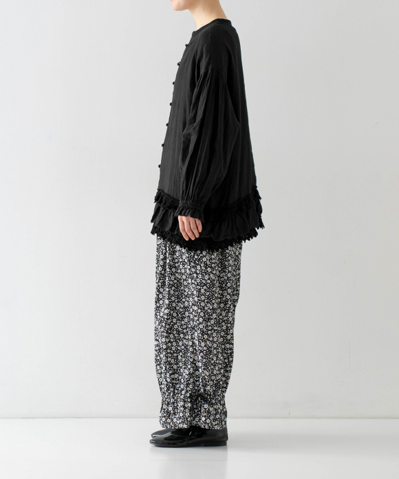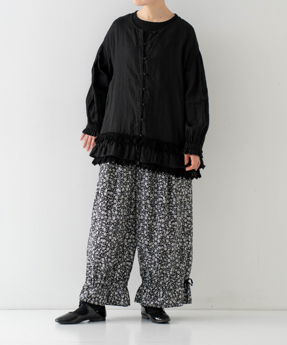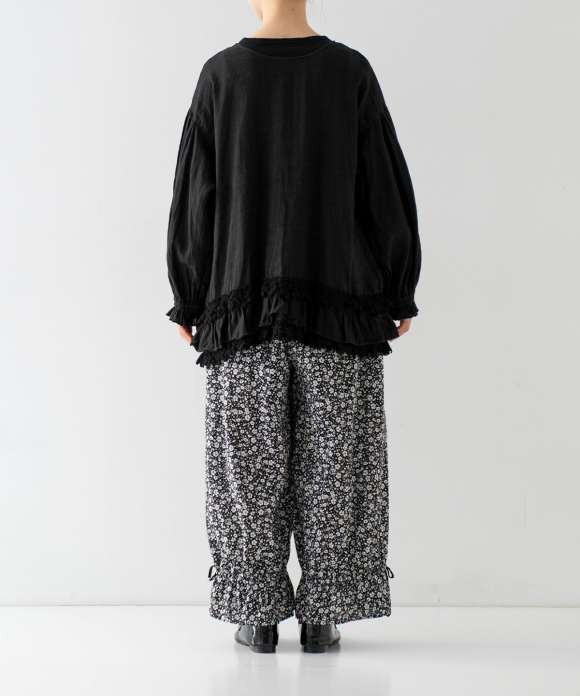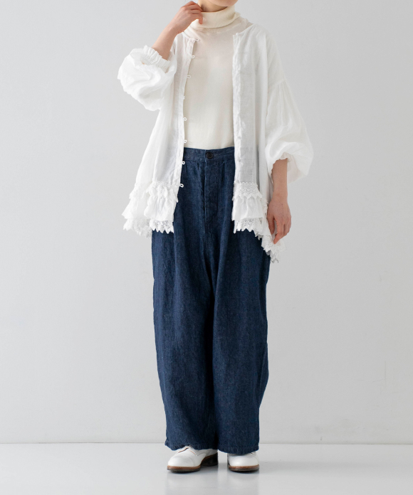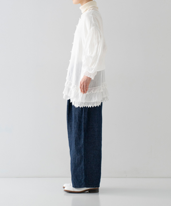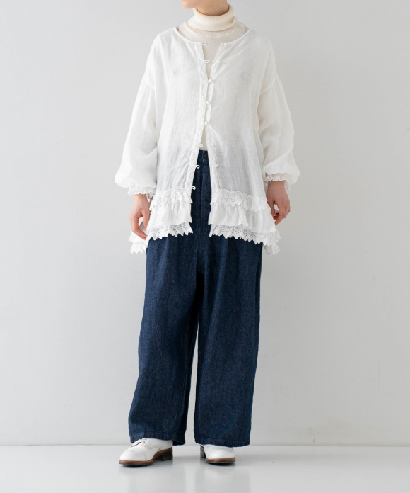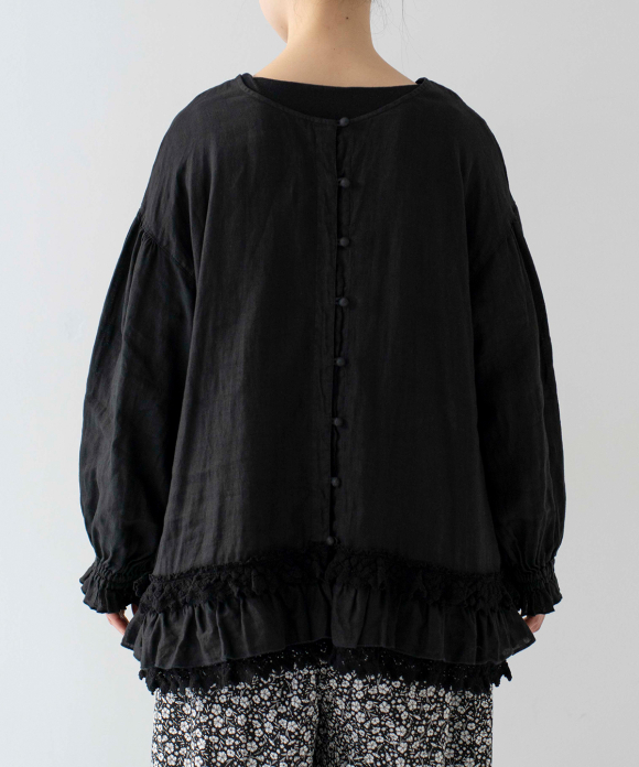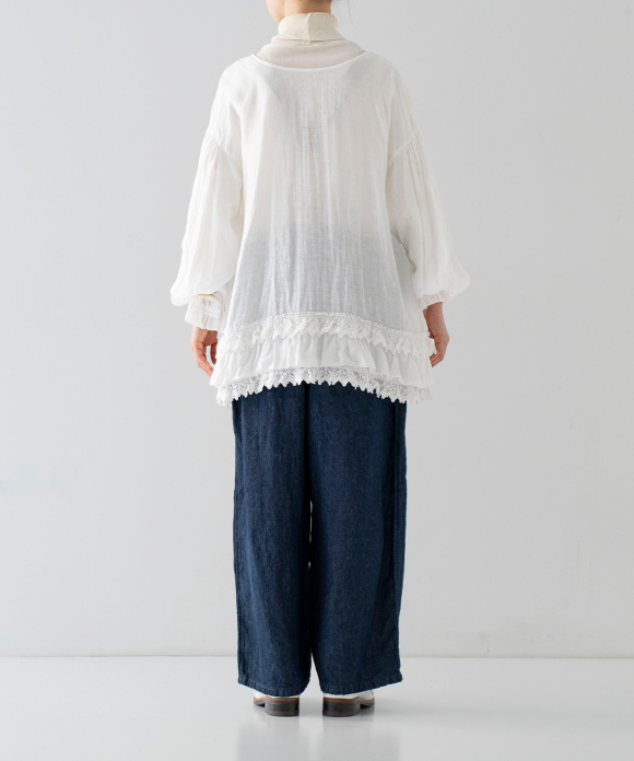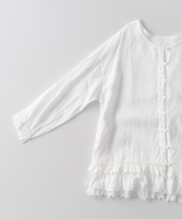Linen Cotton Lace-Hem Two-way Blouse