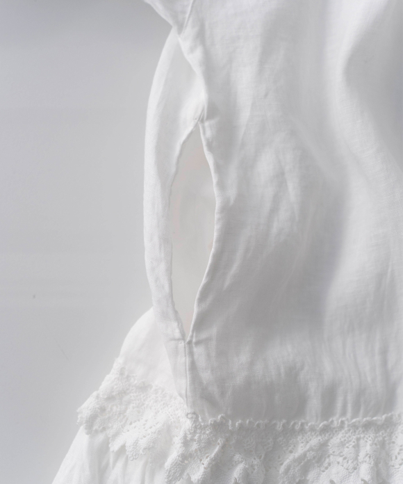 Thin, smooth plain-weave linen is combined with delicate lace for an antique feel.