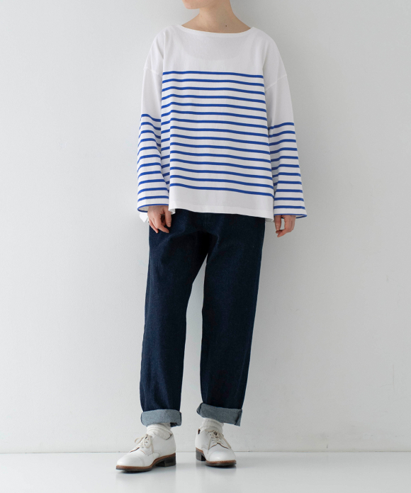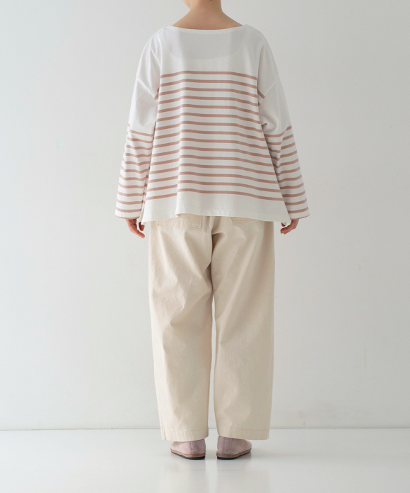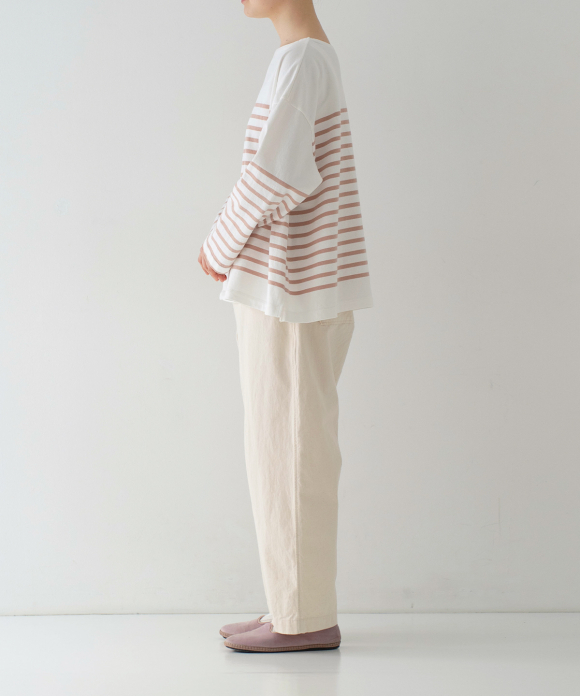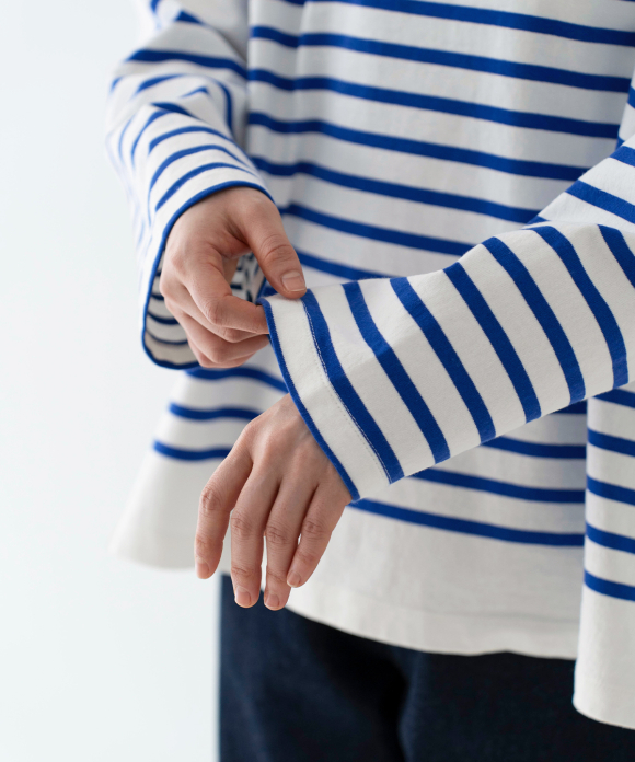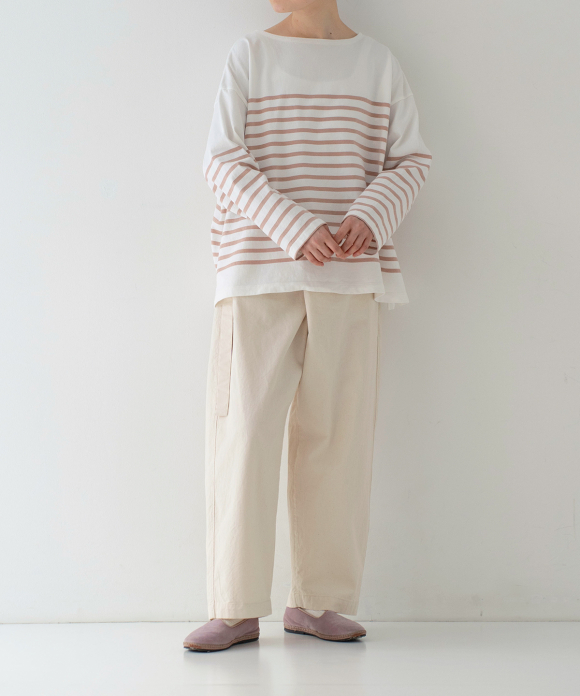 This material is spun using the power of air, giving it volume yet a dry touch and a moderately stiff texture. The yarn is spun using a method commonly used for American-made T-shirts and denim, giving it a rugged surface feel.