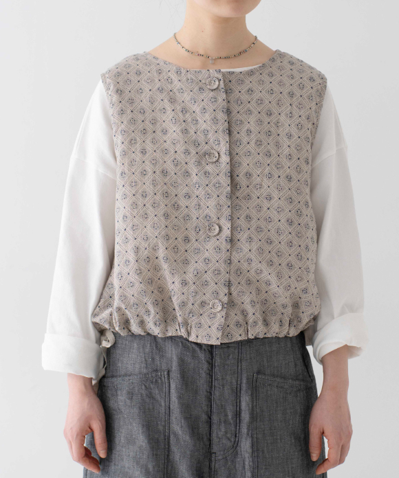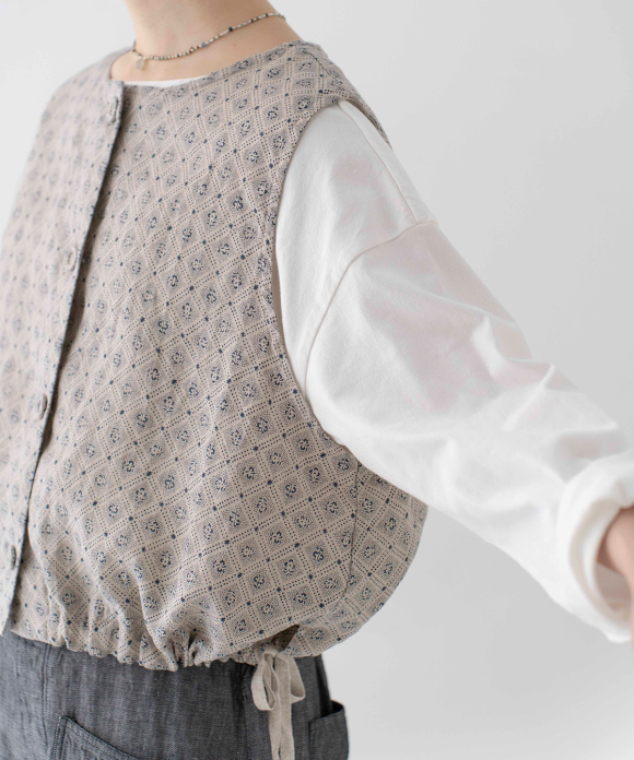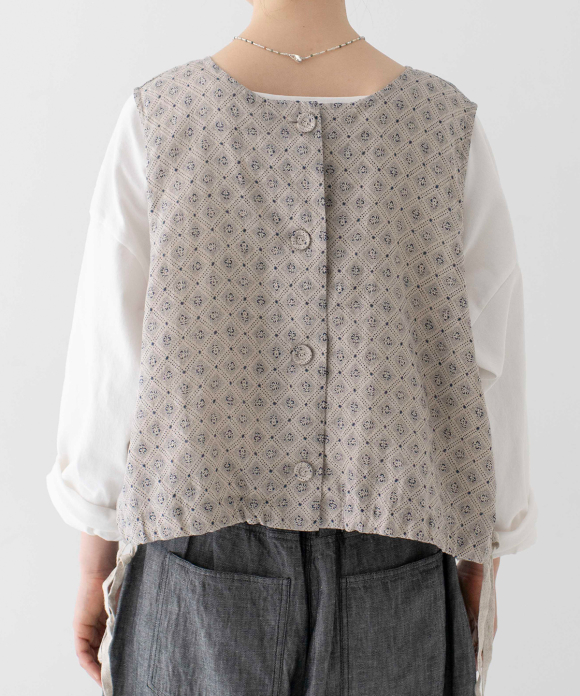 A short vest made from original textile inspired by vintage block prints.