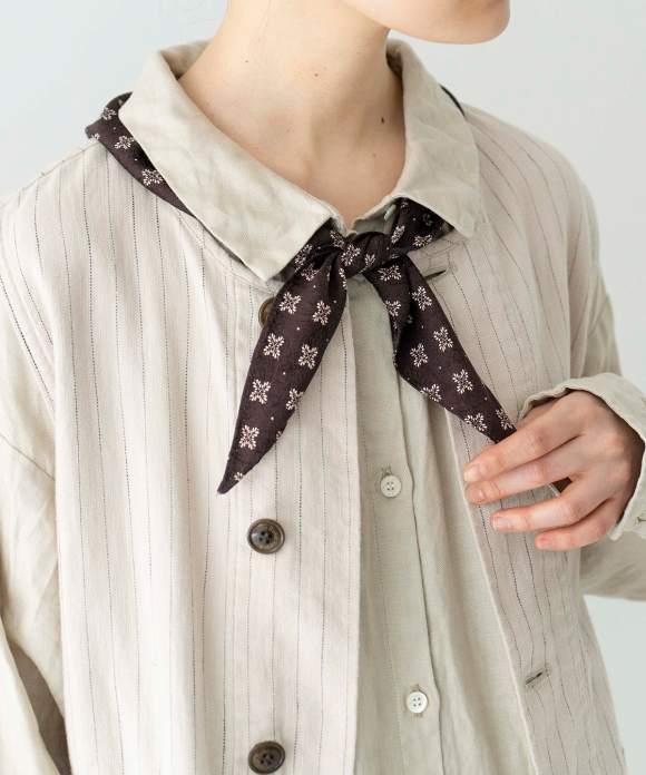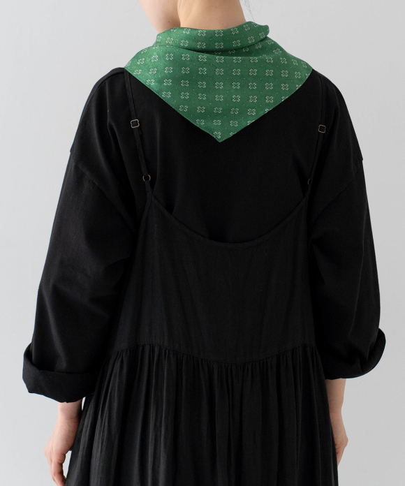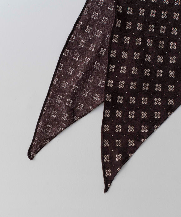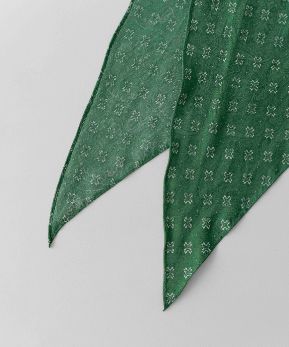 This small triangular scarf is a versatile accessory that can be worn around the neck, head, or tied in hair.