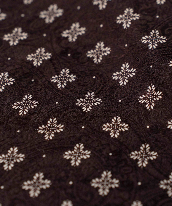 The natural luster and drape of the silk enhance the beauty of the pattern, making it suitable for both casual and formal wear.