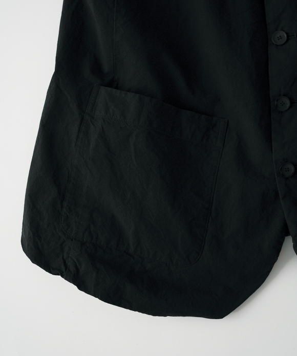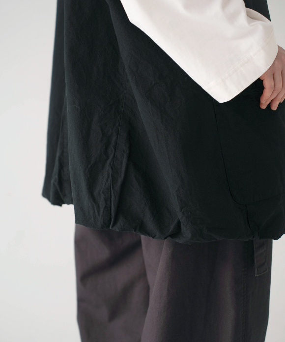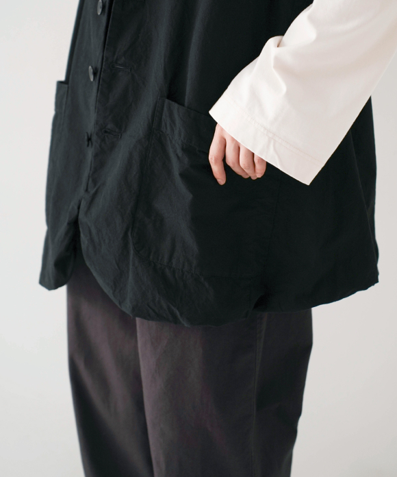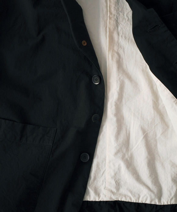 Lining: A plain weave fabric using uneven 100% cotton yarn for both the warp and weft, woven in Nishiwaki City, Hyogo Prefecture. Spinning on a spinning machine from the 1970s gives it a vintage feel. Furthermore, a shuttle loom is used to slowly weave the yarn without applying too much tension, resulting in a soft, fluffy fabric.