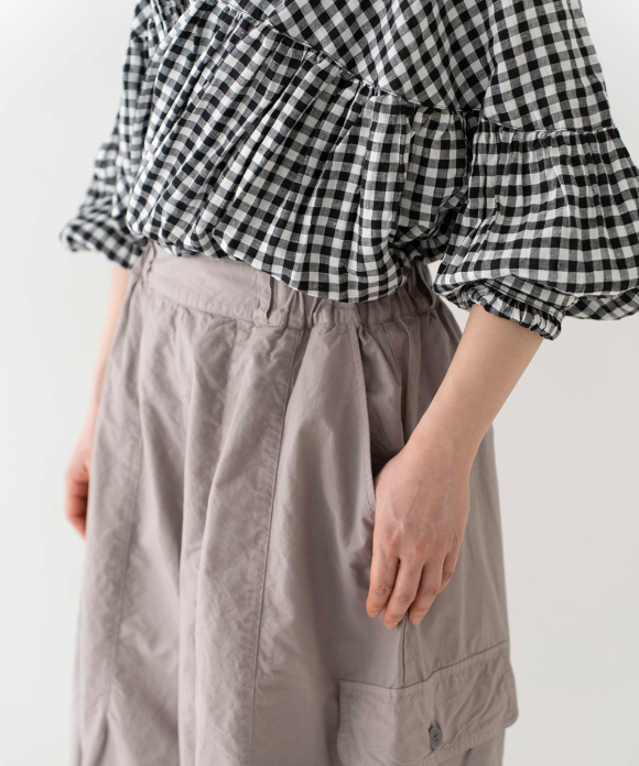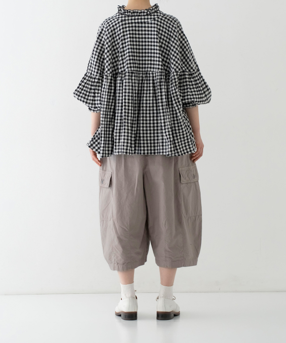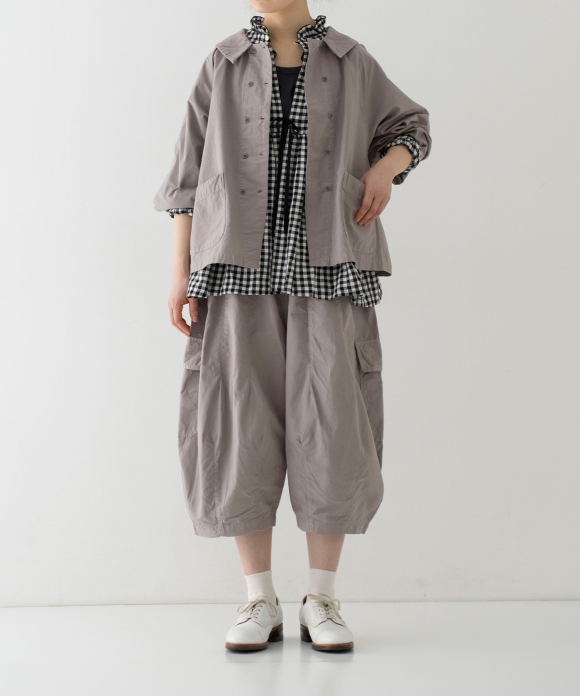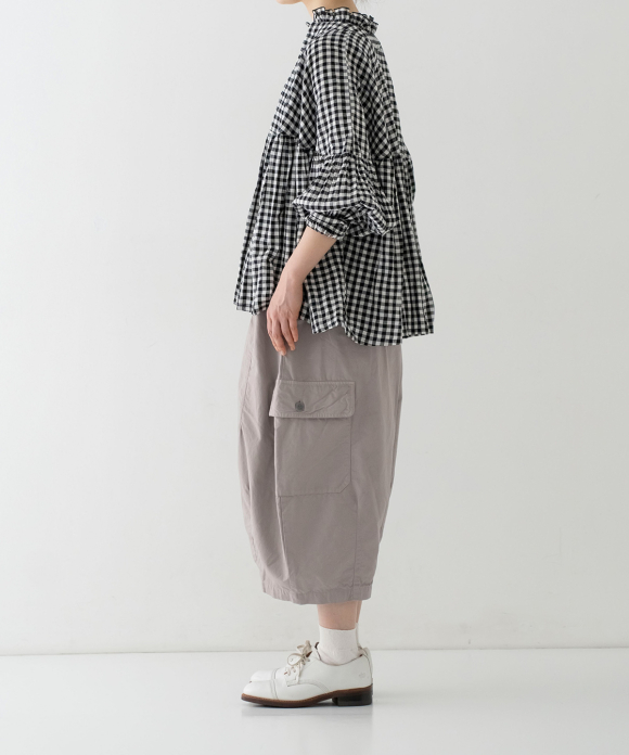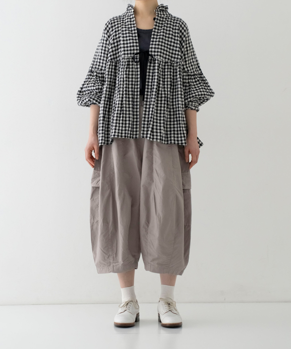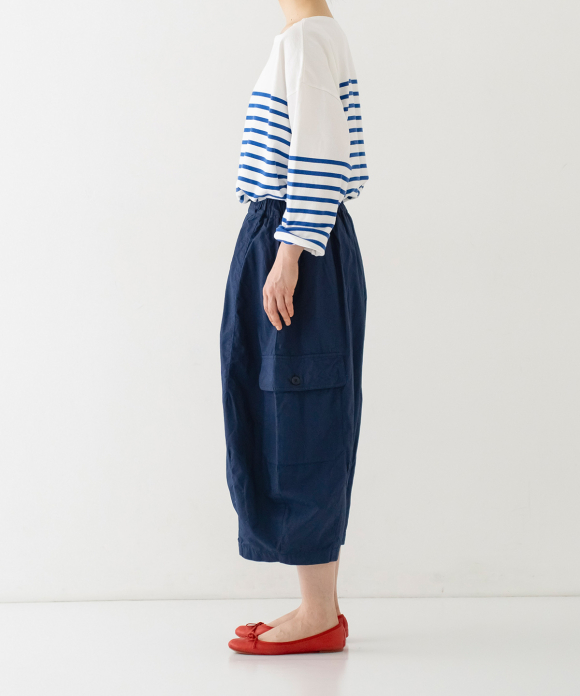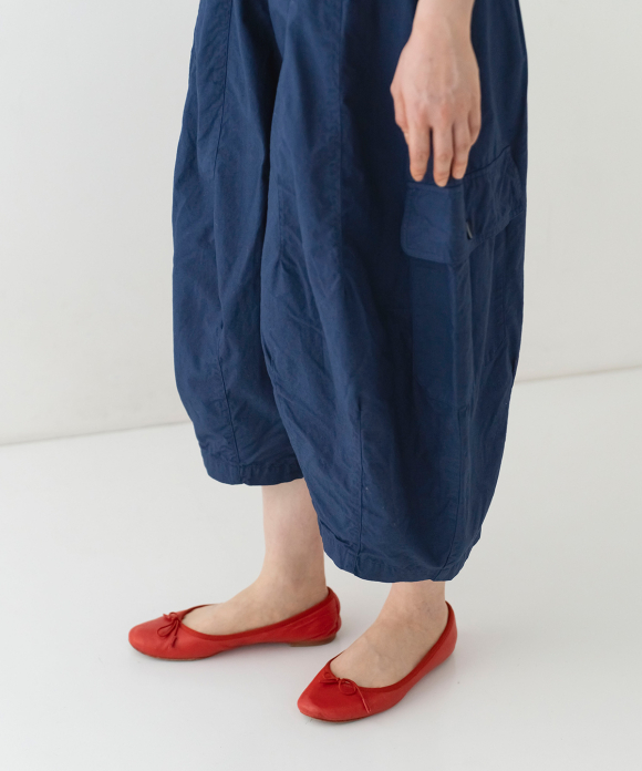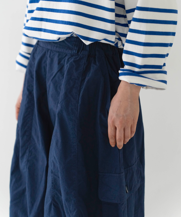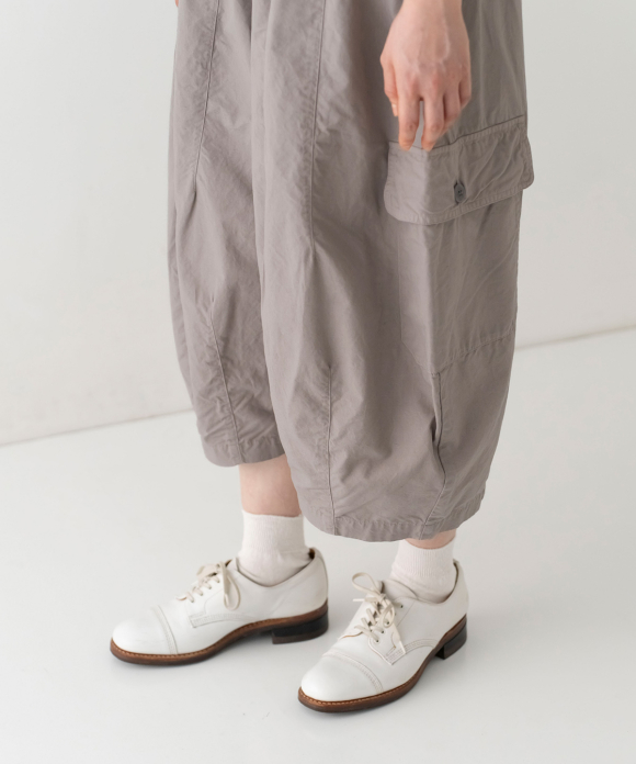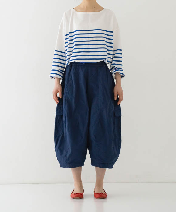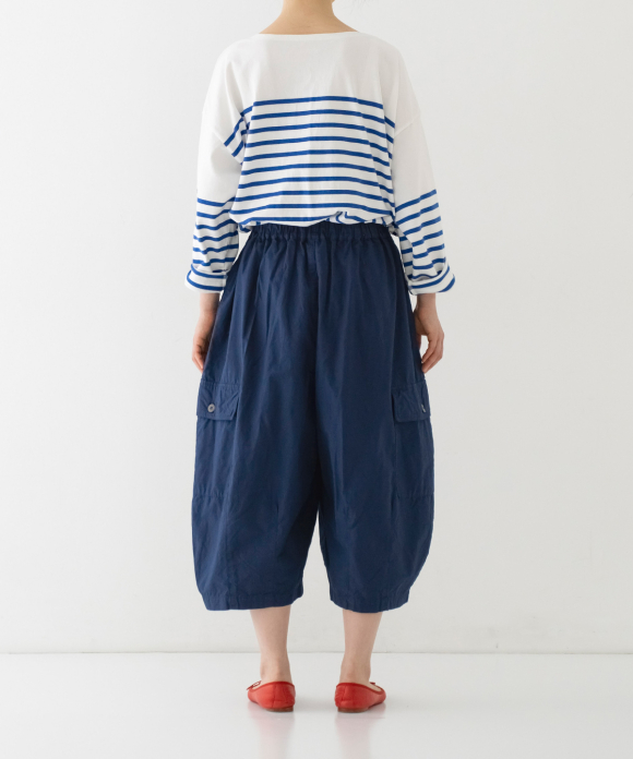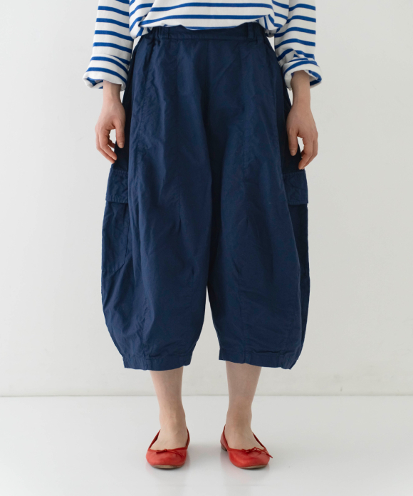 These popular barrel pants from nest Robe have been redesigned with a light, cropped length. The design retains the details of the classic model, such as the rounded, three-dimensional silhouette and stitching. They offer a comfortable, relaxed fit while maintaining a clean, streamlined look—a well-balanced pair of pants.