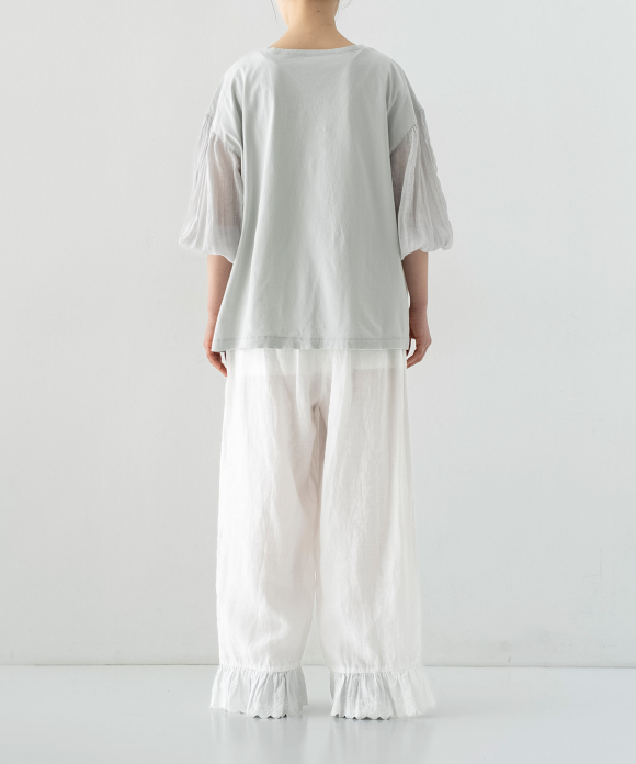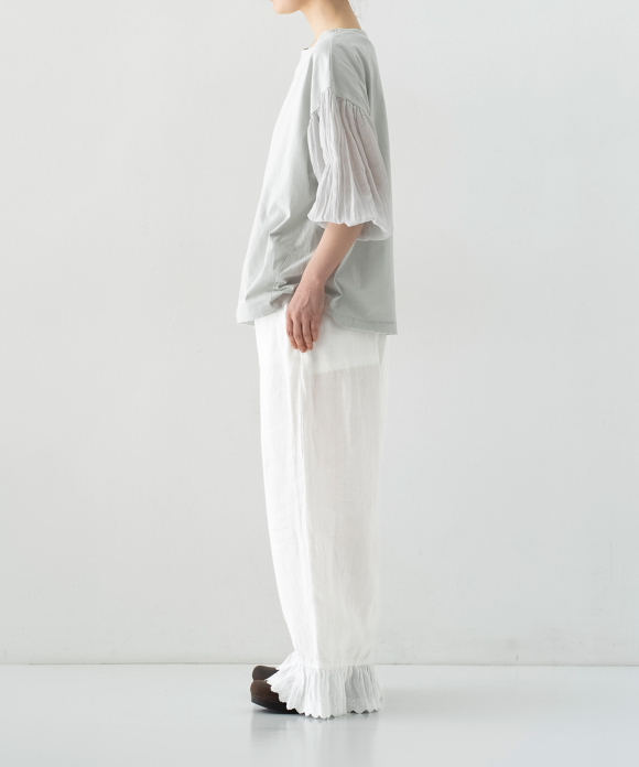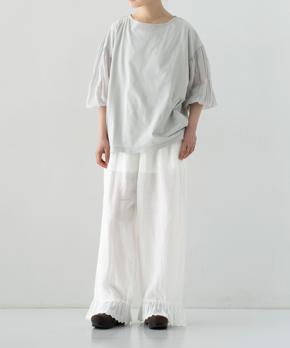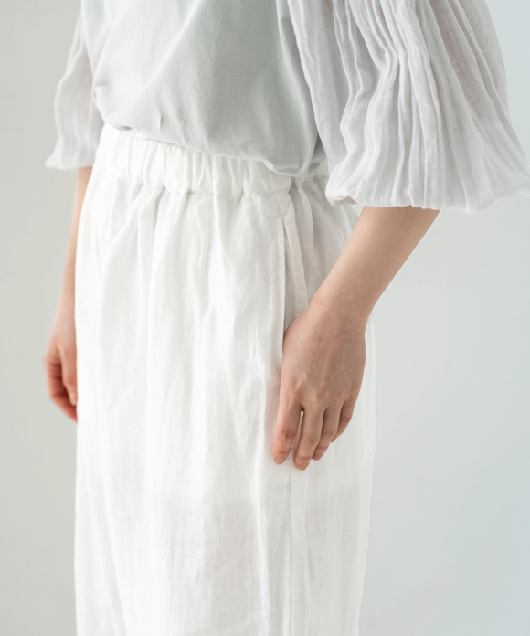 Processed in Shiga Prefecture, it undergoes a final air tumbling process to give it volume and a texture that develops during garment dyeing. This is a fabric that nest Robe has long cherished.