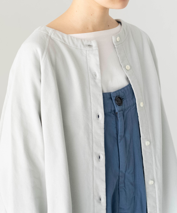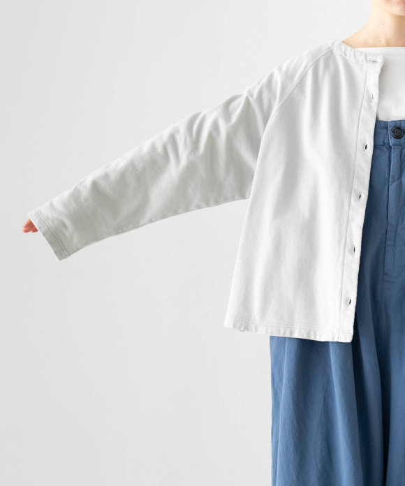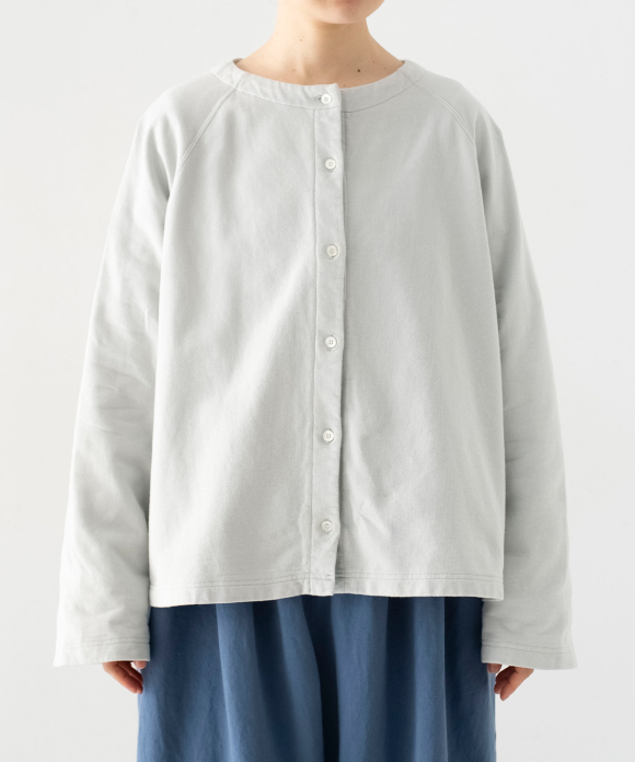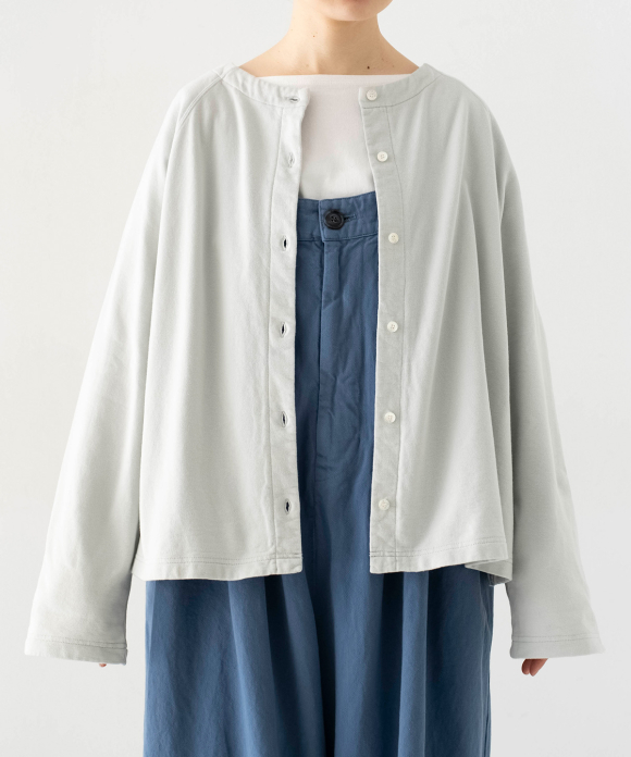 This cardigan, made from a cut-and-sew material, is perfect for the slightly chilly spring weather and for protecting yourself from the summer sun. The fabric uses a mini terry cloth with a dry texture. It's lightweight and has a moderate thickness, making it easy to throw on. The raglan sleeves make it easy to layer with various innerwear. The boxy silhouette gives it a clean, sophisticated look. It's basic, easy to mix and match, and will be a staple for many seasons.