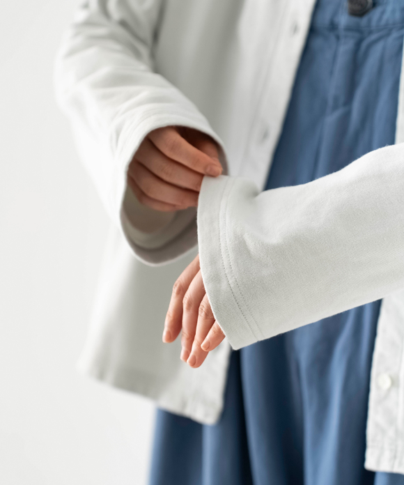 While terry cloth materials generally tend to be thick, this fabric is intentionally finished with a reduced thickness, resulting in a light and just-right feel.