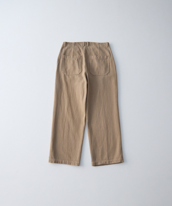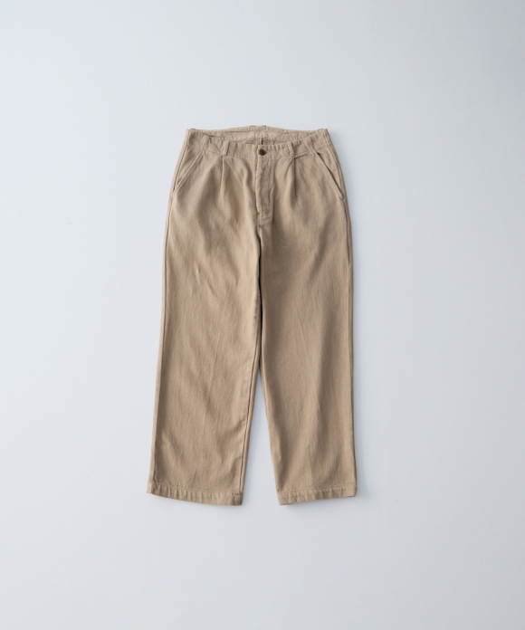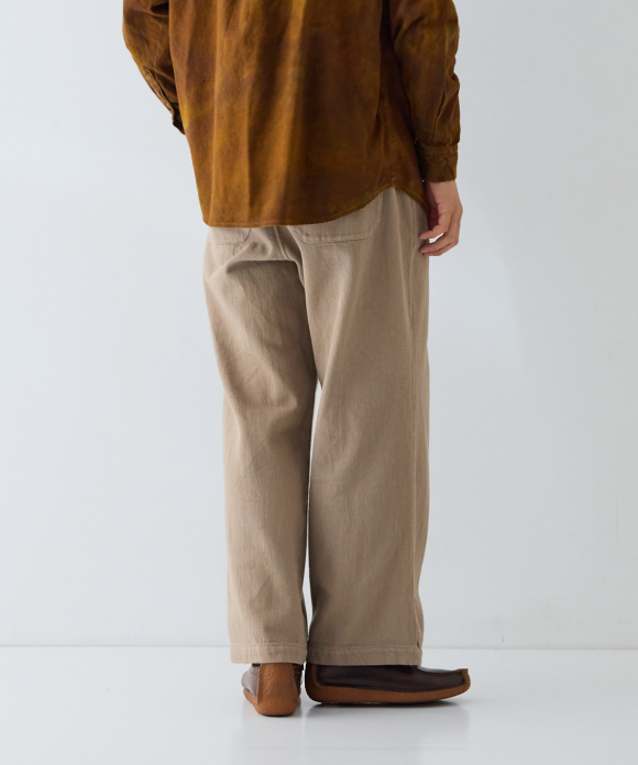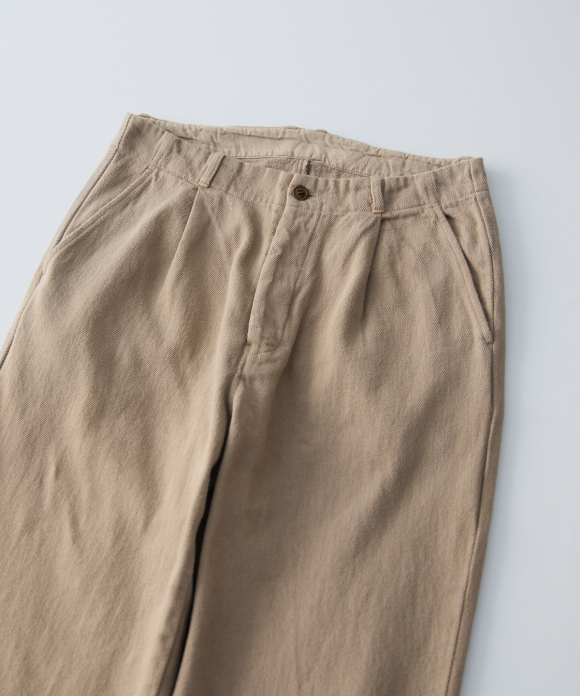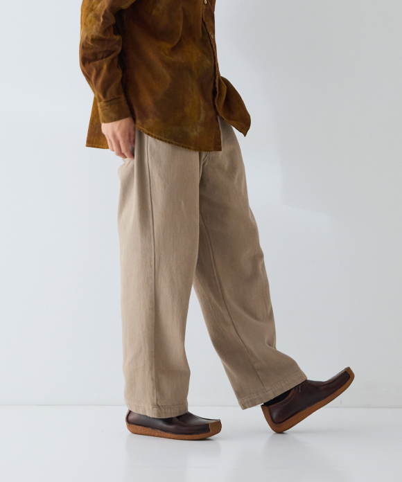 A wide-leg pleated trouser crafted from our exceptional unique cotton denim fabric which has been made in the world-renowned denim manufacturing area of Kojima in Okayama, Japan. This exceptional denim trousers are known for their relaxed sizing and silhouette that falls straight down.