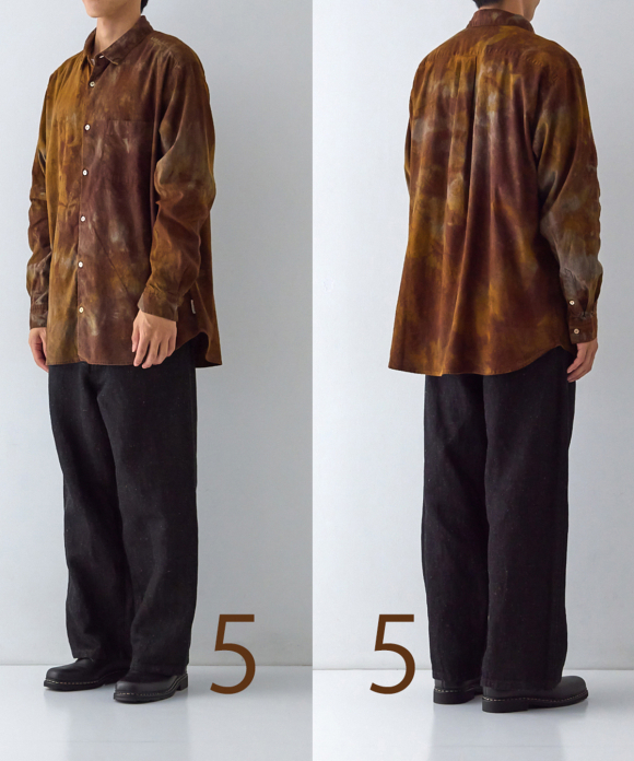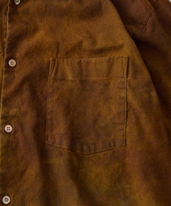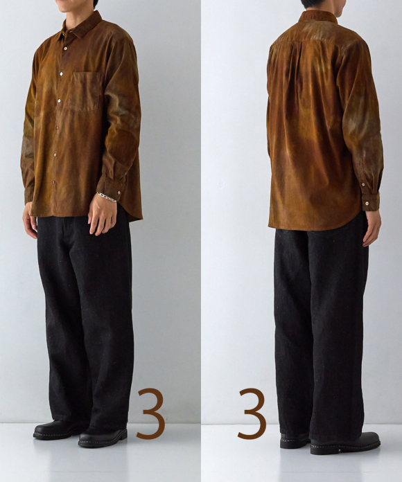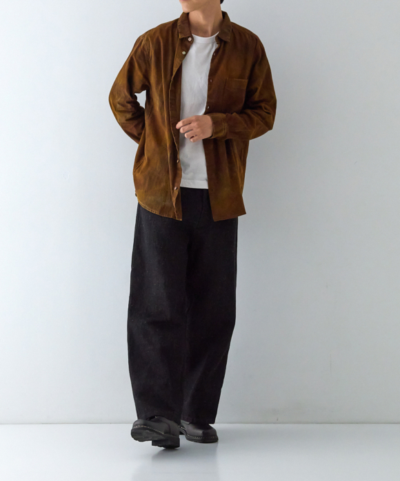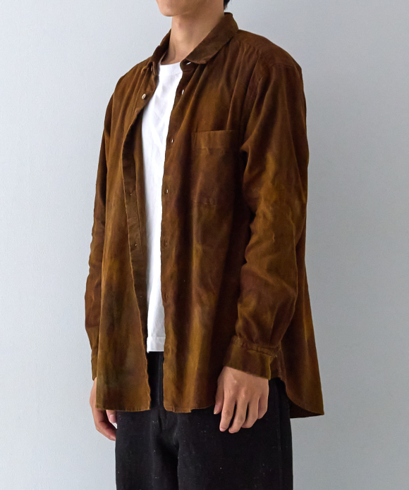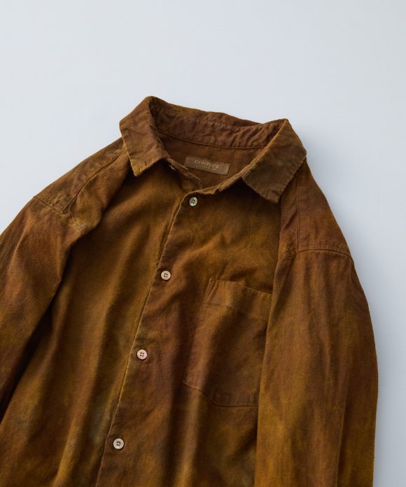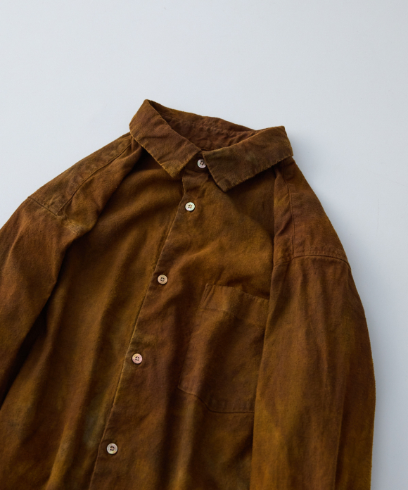 This regular-collar shirt is made with brushed fabric and Uneven-Dyed.