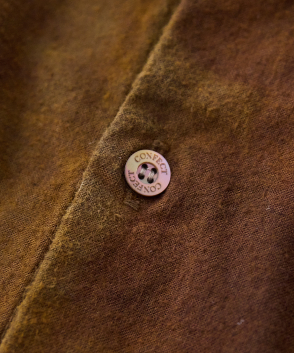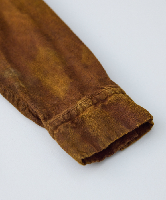 Dyeing the fabric with actual rust would severely deteriorate it, so the Uneven-Dyed technique is used solely as a motif to create the appearance of a rust-dyed garment. We've worked hard to create a garment that can be enjoyed for a long time, not as a sign of aging, but as a sign of aging with repeated wear.