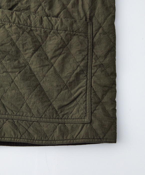 The pockets on the quilted side are hand-stitched with a zigzag stitch. Due to the high density of the fabric, the pocket openings may tear if too much pressure is placed on them, so they have been reinforced.