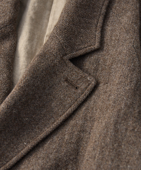 This raglan-style coat is made from a wool and linen blend woven with soft tweed.