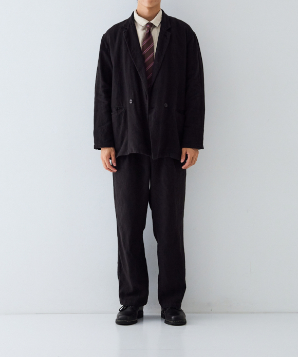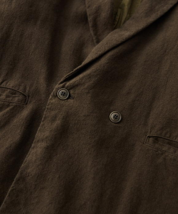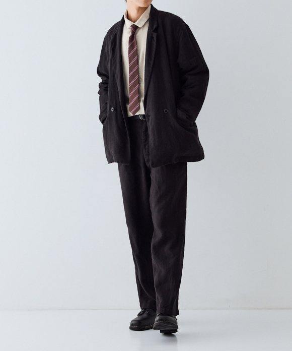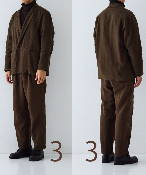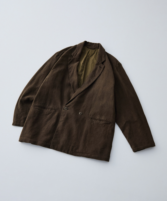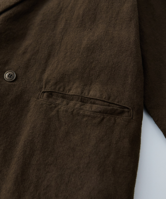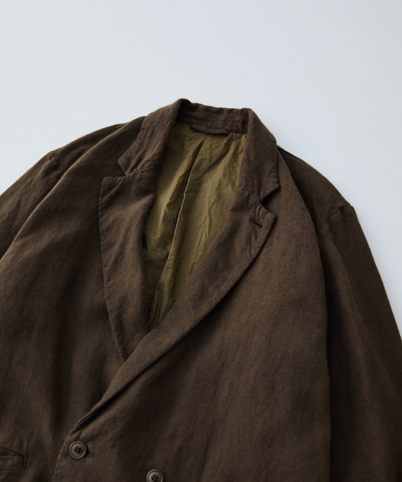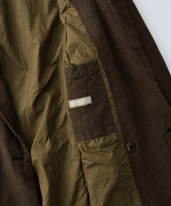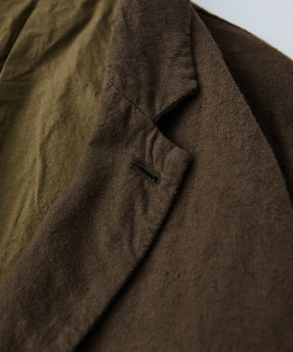 This jacket is made from CONFECT's classic fall/winter fabric, a plain-weave brushed linen.