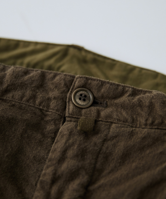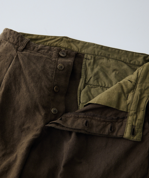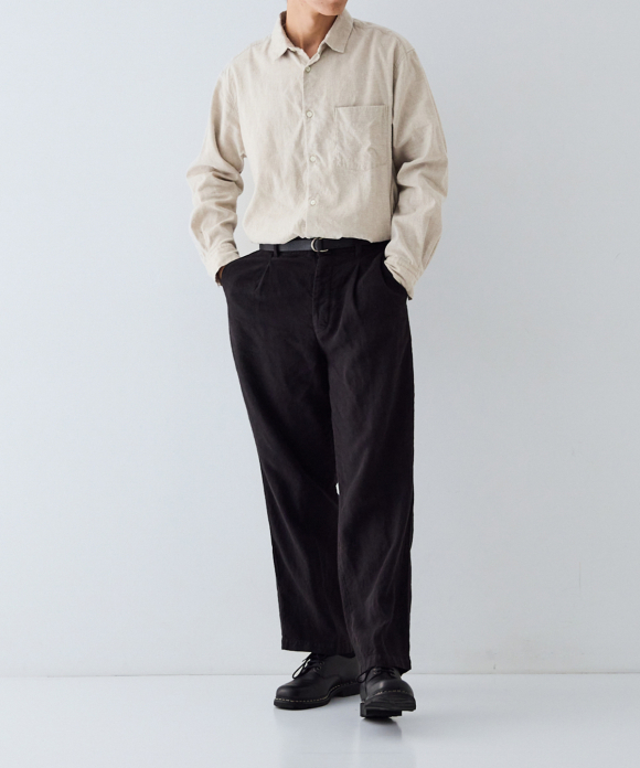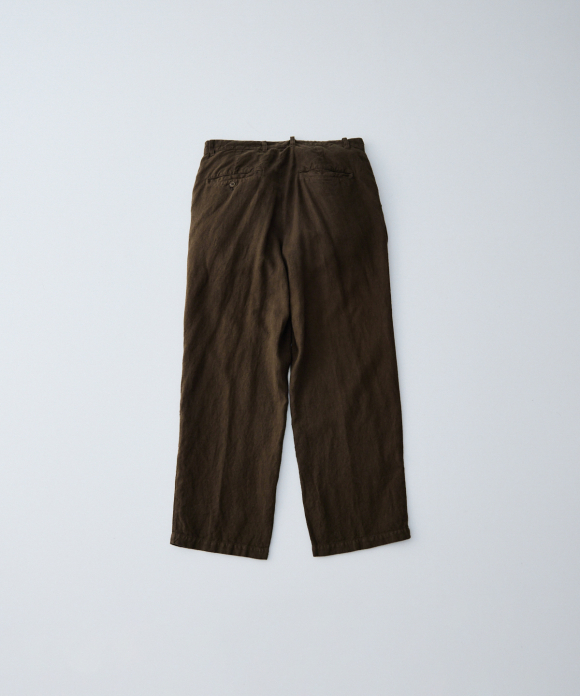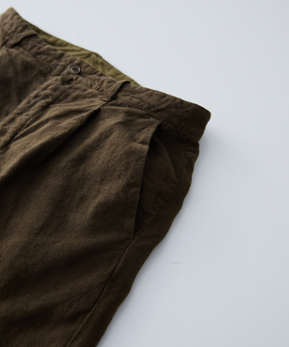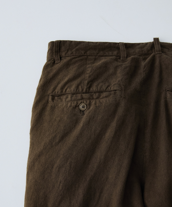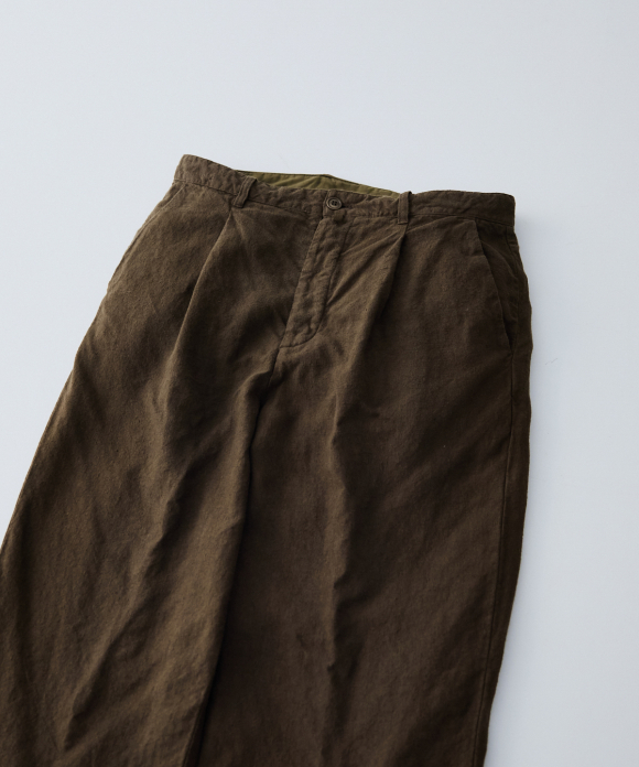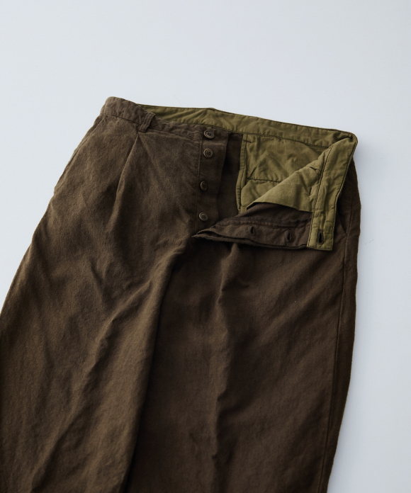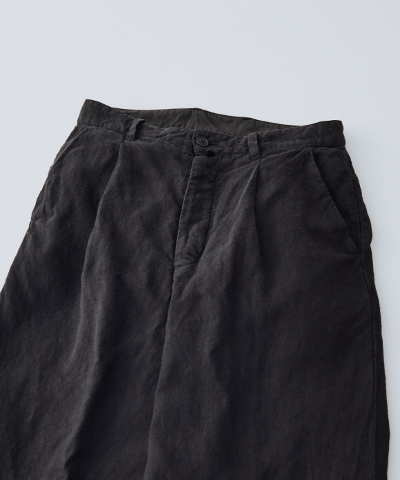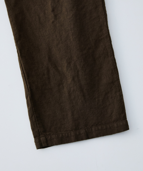 These trousers are made from brushed plain-weave linen, CONFECT's classic fall/winter fabric.