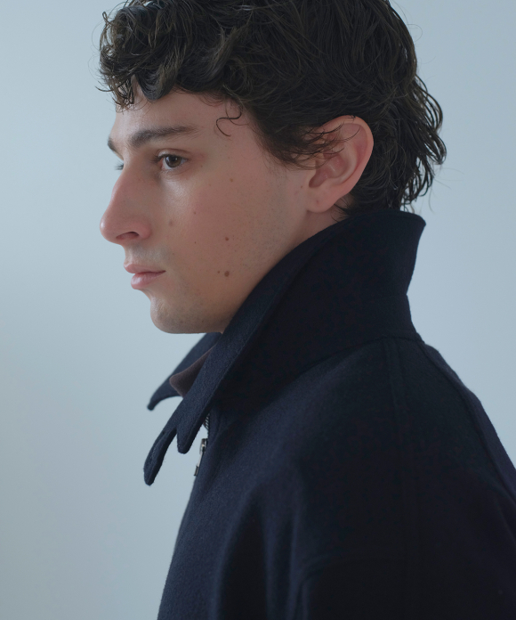 It is further beaver-processed to slightly increase the pile, giving it the elegant luster and soft touch of cashmere. At first glance, it looks heavy, but it is extremely soft and light, and as it is a cut-and-sew material, it is also stretchy.