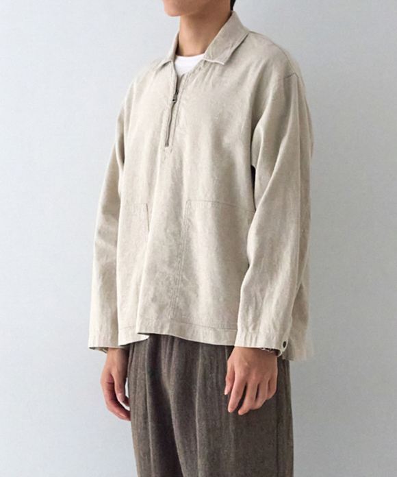 (UpcycleLino) Brushed Linen Cotton Half-Zip Pullover Tops