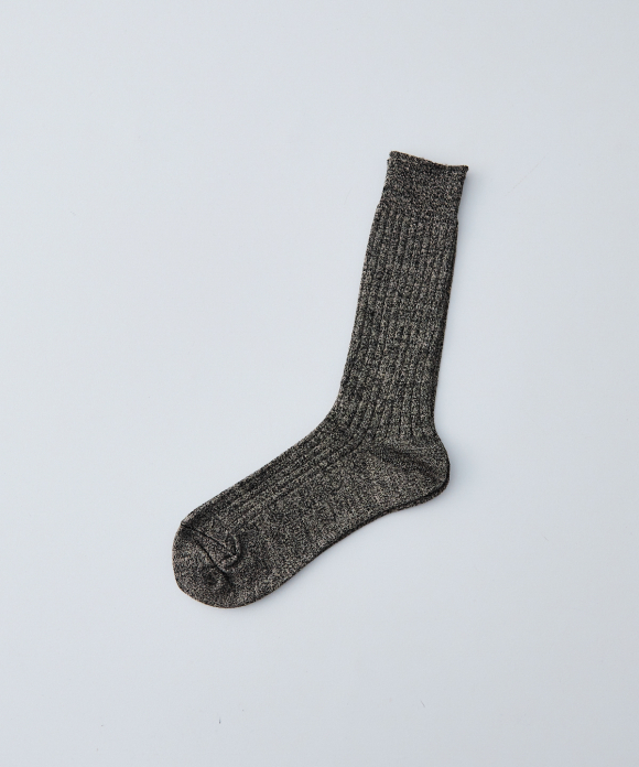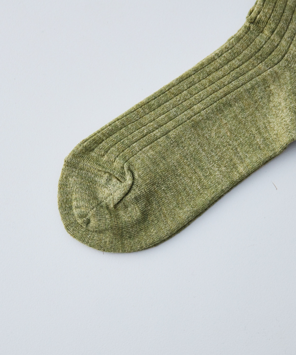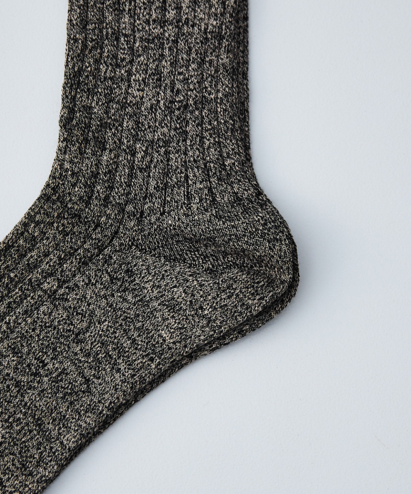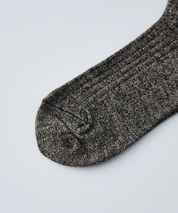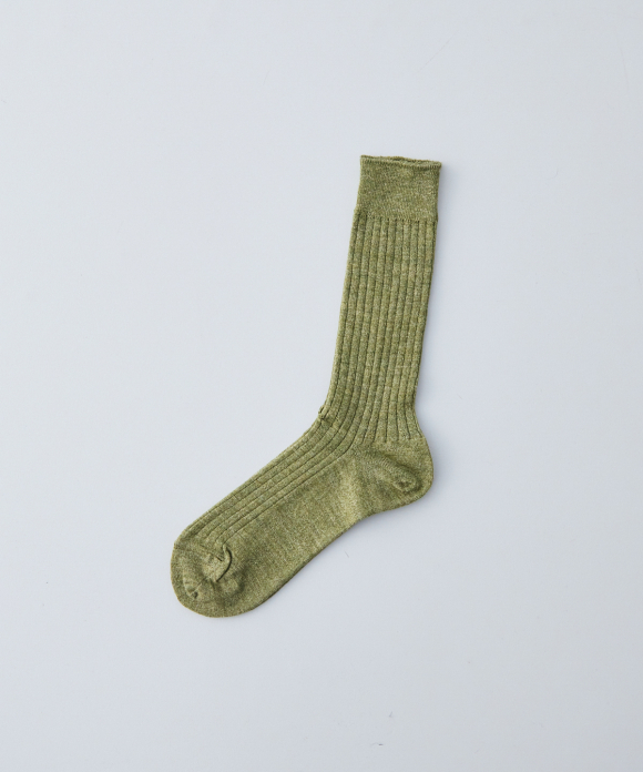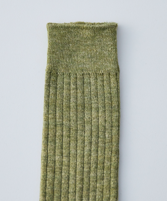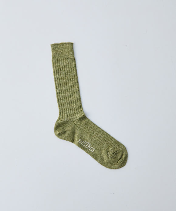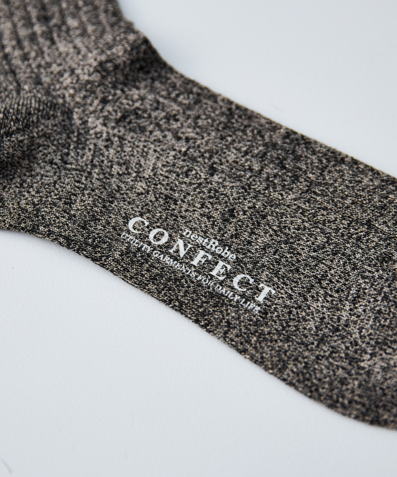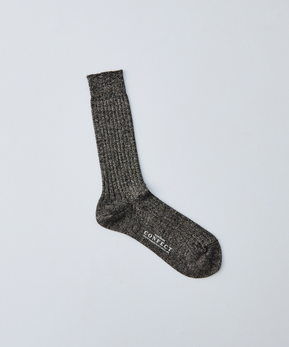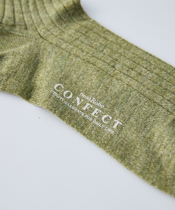 These socks feature the look of typical ribbed socks, but make full use of CONFECT's signature linen material, focusing on feel, comfort, and everyday ease of use. While CONFECT's standard linen socks are low-gauge, these socks are made with a thin, high-gauge knit, creating a stark contrast. They also pair perfectly with leather shoes like "SANDERS."