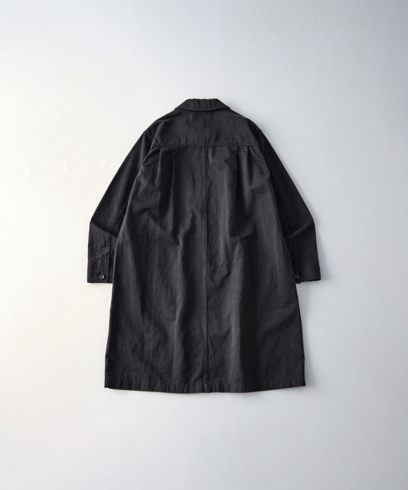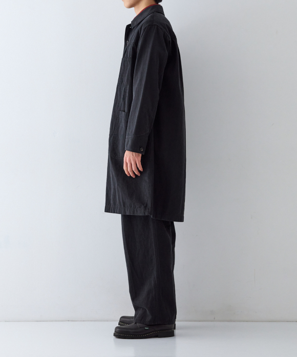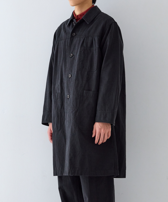 This atelier coat takes advantage of the unique touch, drape, and faded feel of the fabric created by the Nidom process.