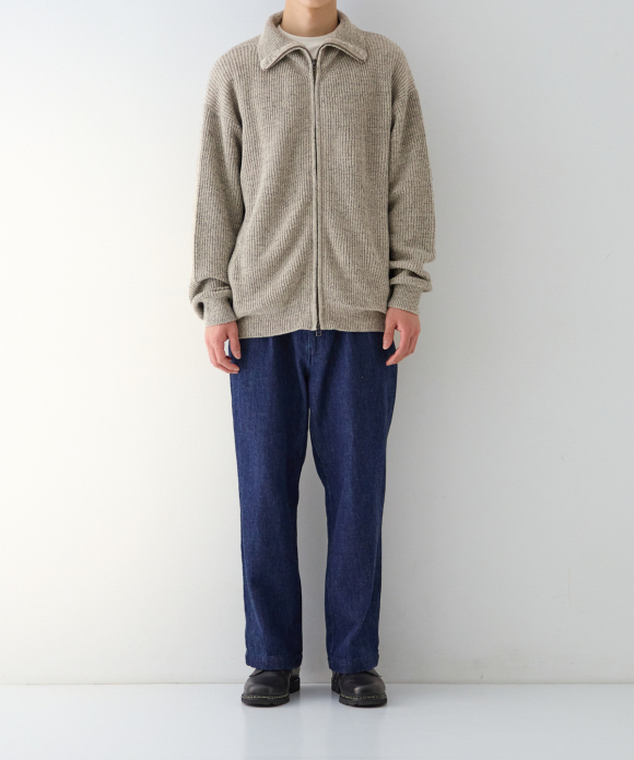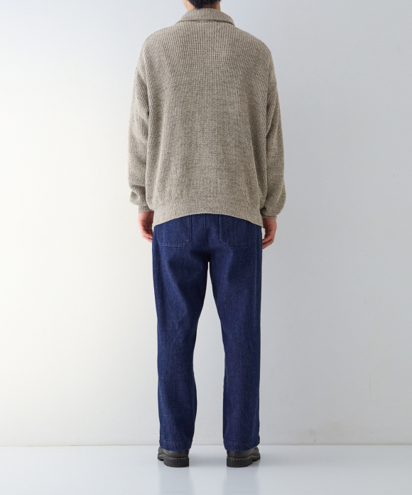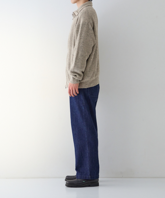 This material is made from a twisted blend of linen yarn made from European linen and a blend of Indian organic cotton and Chinese hemp. The yarn is twisted in Aichi Prefecture and dyed and knitted in Gosen City, Niigata Prefecture, making it a "MADE IN JAPAN" knit.