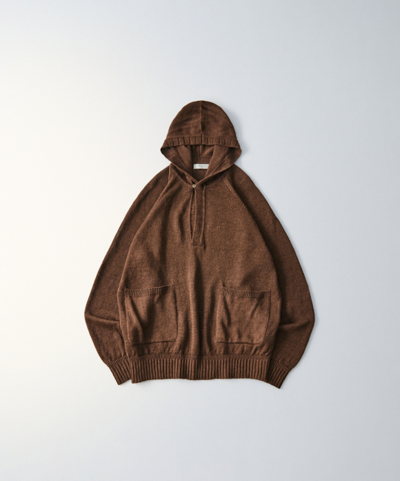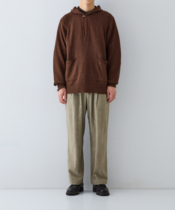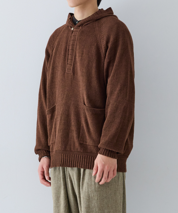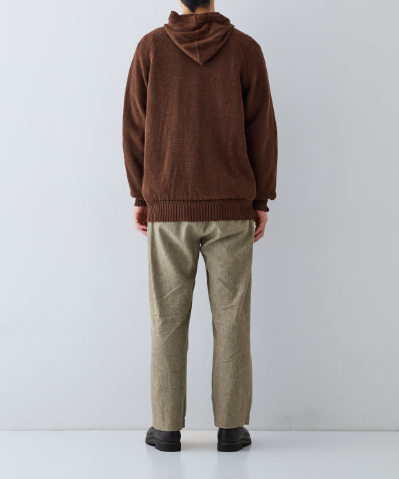 This hooded hoodie has no opening in the front, and by using thick linen yarn, it not only has the luxurious color of linen, but also a casual feel, making it a linen hoodie suitable for adults.