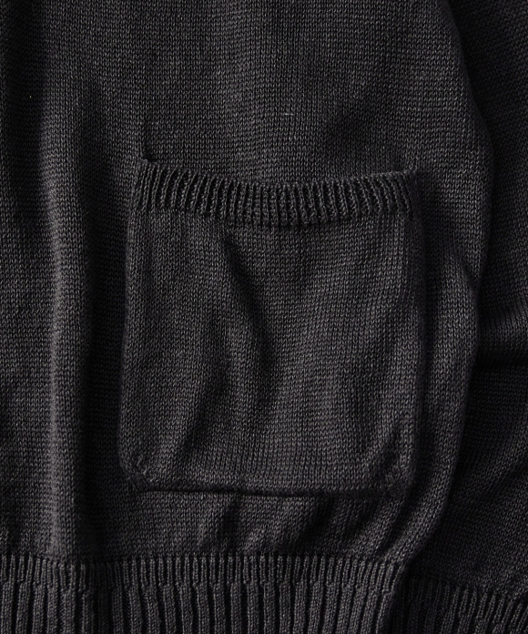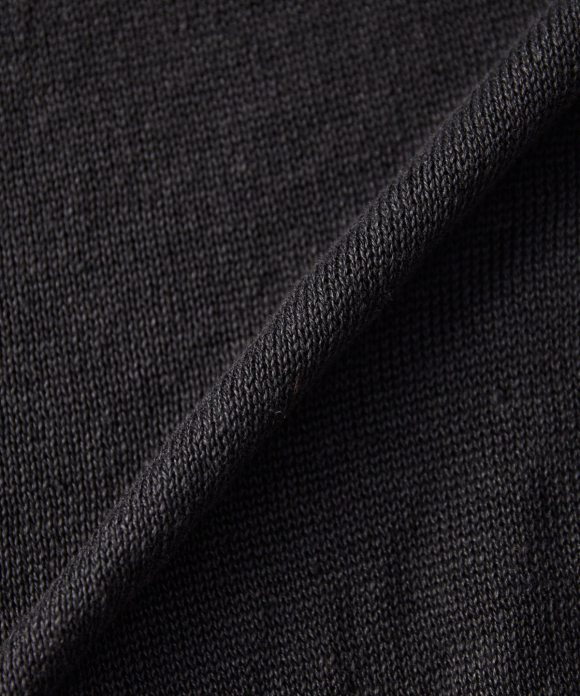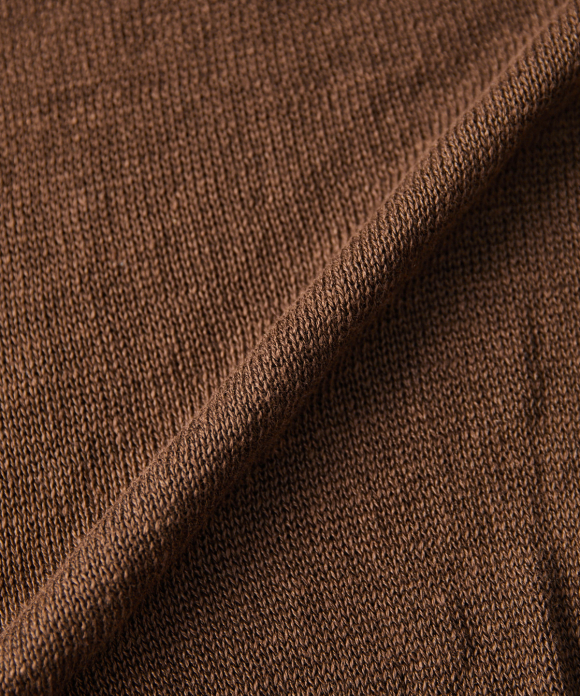 By using a thick 25/2 yarn, the knitwear has the crispness and luxurious color of linen, while also featuring a nep texture, creating a hard, CONFECT-esque knitwear look.