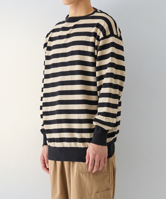 This "MADE IN JAPAN" knitwear is made from 100% European linen yarn and a blend of bamboo fiber and American cotton.