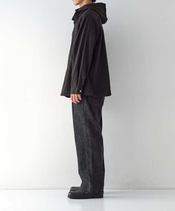Easy to wear and lightweight, the fabric's distinctive kapok and linen characteristics allow it to have a firm texture, yet with repeated wear it develops volume and softness, creating a pleasant drape and shading.
