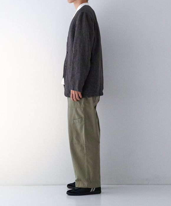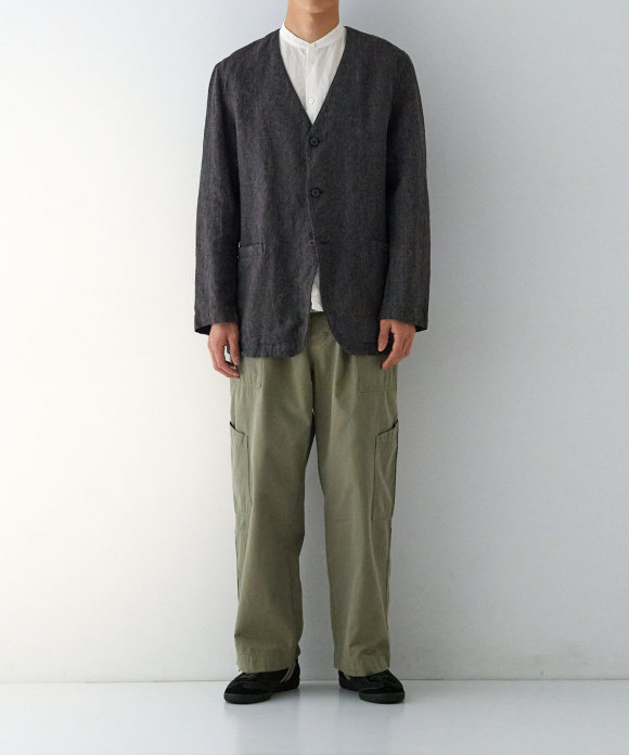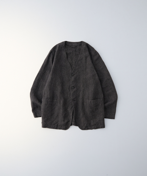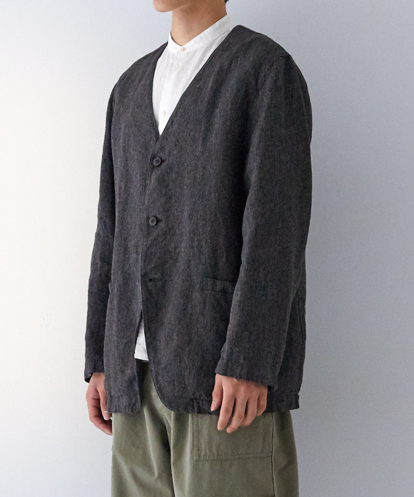 Linen Melange Twill Collarless Jacket