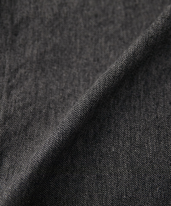 The warp threads are twisted with black and natural threads, and the weft threads are black. This is a thick, heathered fabric. Because the fibers are strong, it maintains its strength even when woven loosely, resulting in a thick yet soft material.