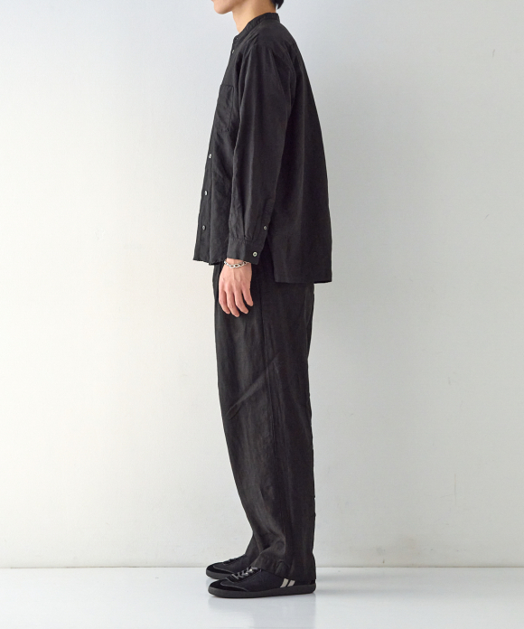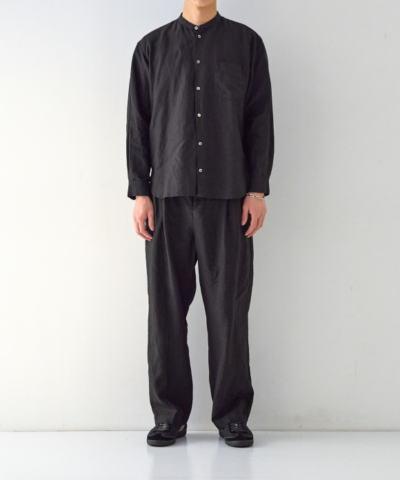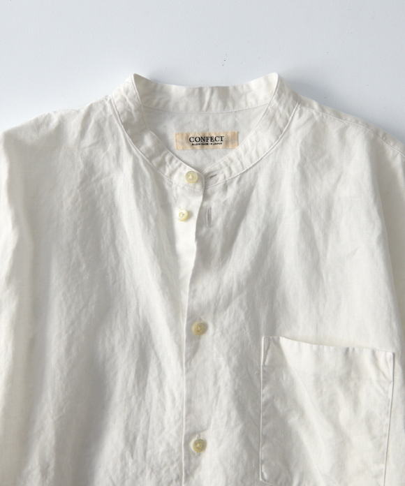 We've updated CONFECT's classic high-count linen band collar shirt.